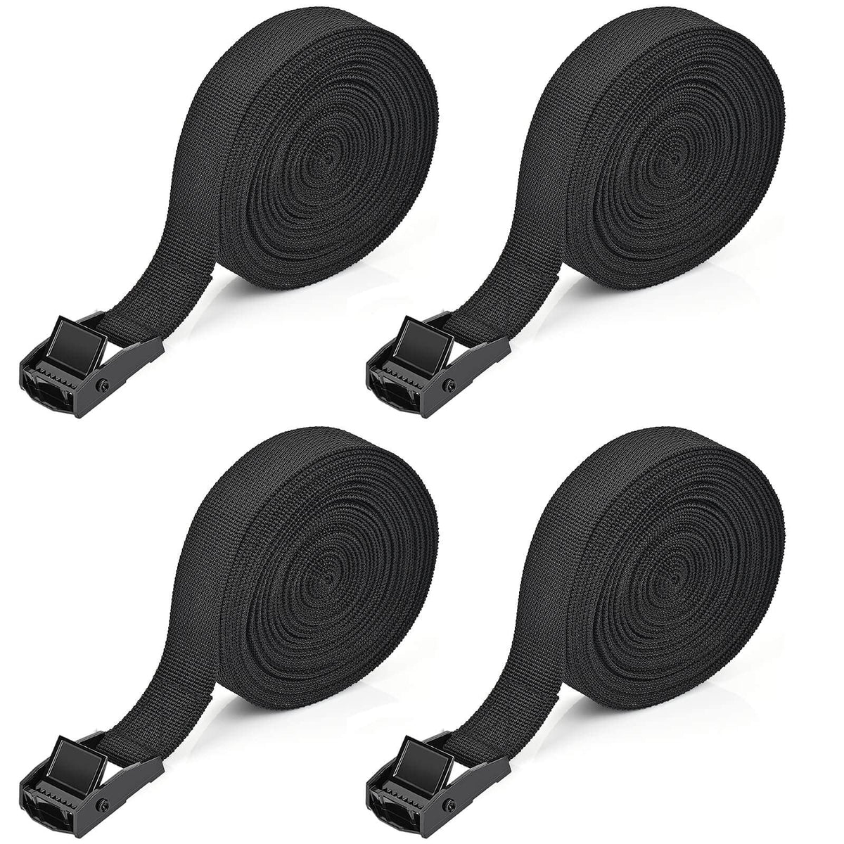 Kshineni Tie Down Straps 4Pcs Lashing Strap 19.7' x 1 Adjustable Cam Buckle Cinch Ratchet Tie-Down Straps for Cargo, Trucks, Luggage, Trailer, Motorcycle (Black)