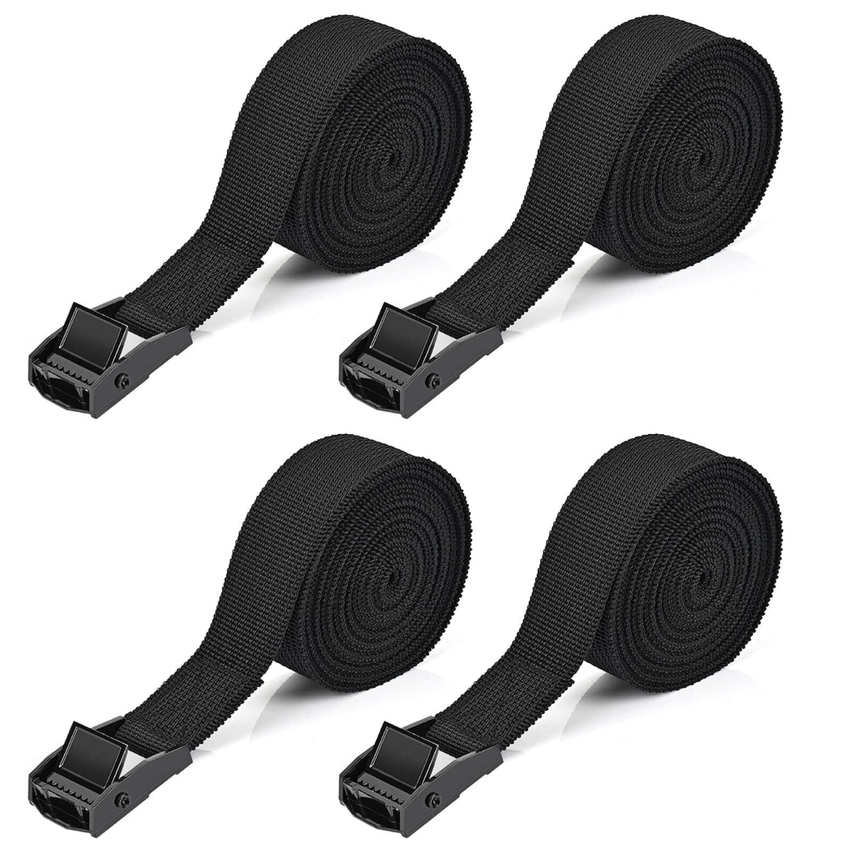 Kshineni Tie Down Straps 4Pcs Lashing Strap 8.2' x 1 Adjustable Cam Buckle Cinch Ratchet Tie-Down Straps for Cargo, Trucks, Luggage, Trailer, Motorcycle (Black)