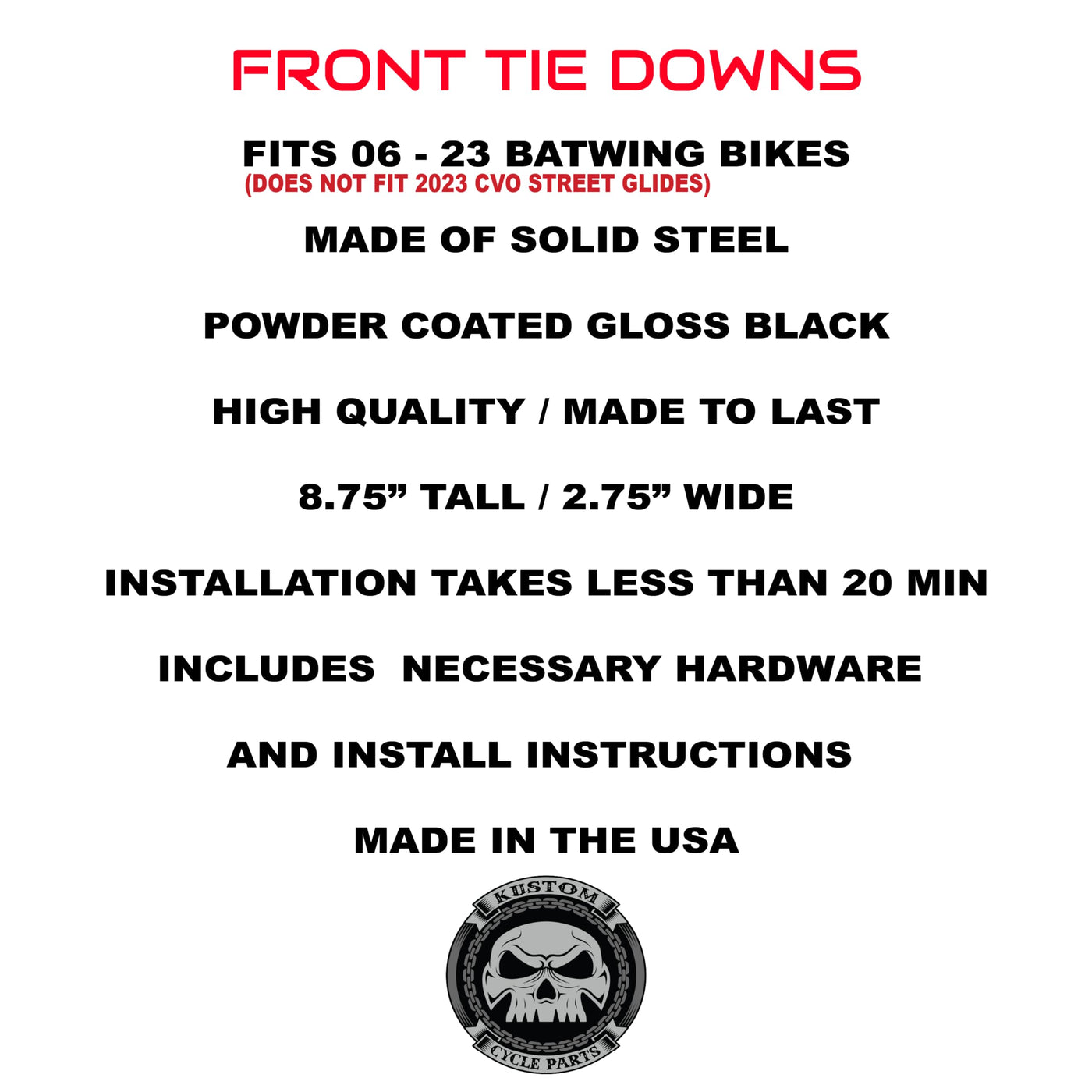 Kustom Cycle Parts Aftermarket Harley Davidson Touring Front Tie Down Bracket Fits 2006 - 2023 Street Glide And Electra Glides.