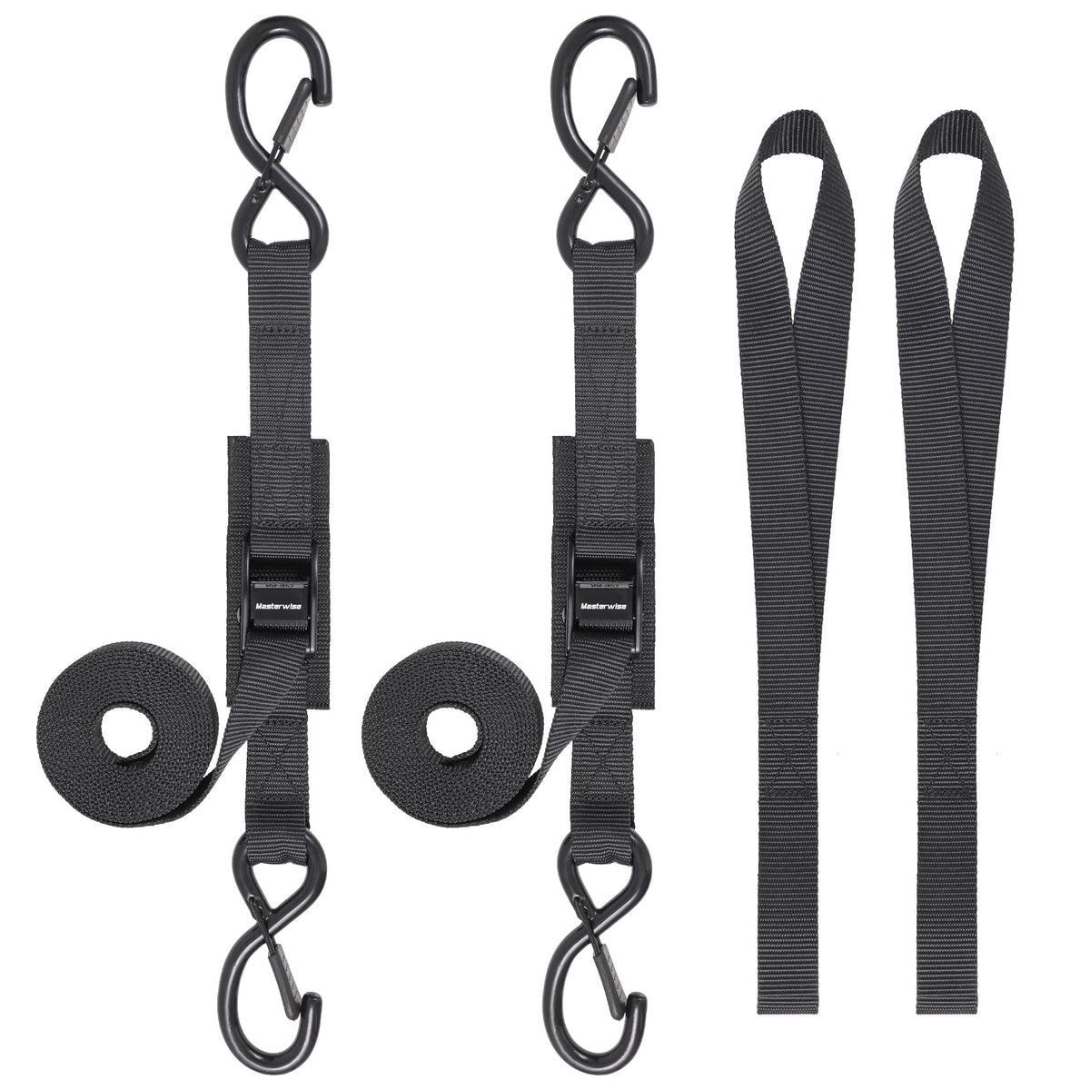 Masterwise Tie Down Straps with Hooks, 8 feet 1200lbs Break Strength Cam Buckle Tiedown Set with Integrated Soft Loops for Motor