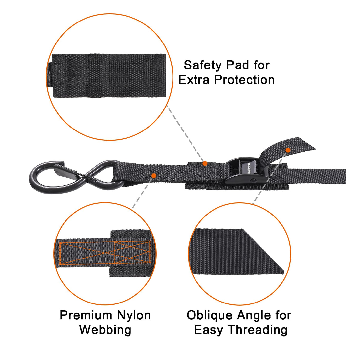 Masterwise Tie Down Straps with Hooks, 8 feet 1200lbs Break Strength Cam Buckle Tiedown Set with Integrated Soft Loops for Motorcycle, Kayak, Car, Truck, Dirt Bike