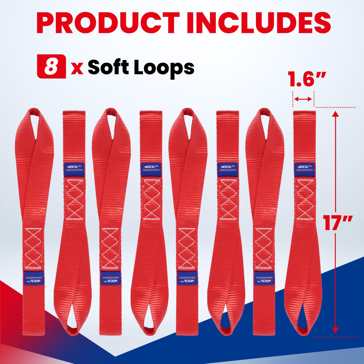 Moca 8-Pack Soft Loop Tie Down Straps 12000 Lbs Breaking Strength 1.6 X 17 Inches, Heavy Duty Tie Down Loops For Secure Traileri