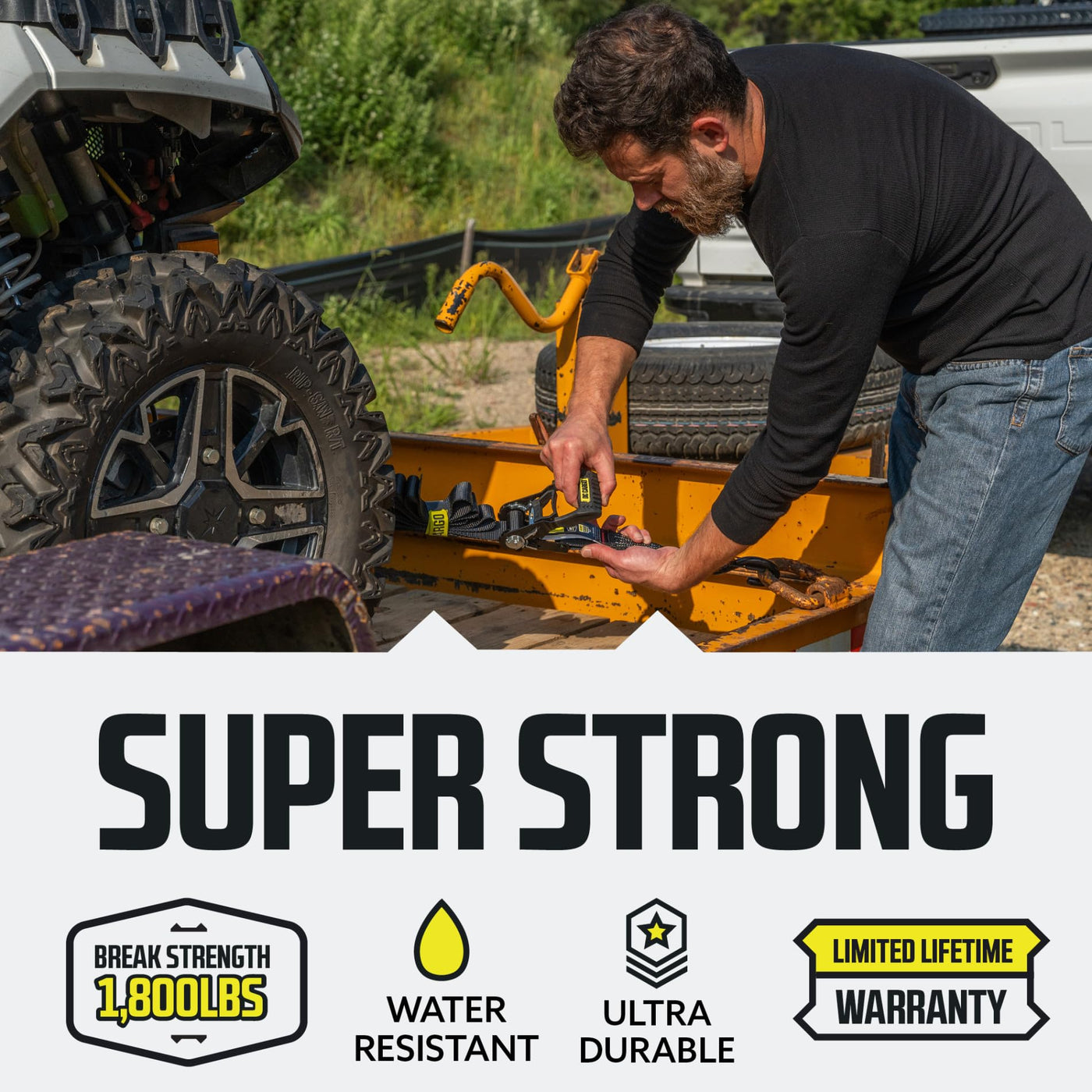 Motorcycle Tie Down Strap Kit, Includes (4) 1'' X 15' Ratchet Straps With (4) Soft Loops, Coated S Hooks & Padded Handles | 1,80