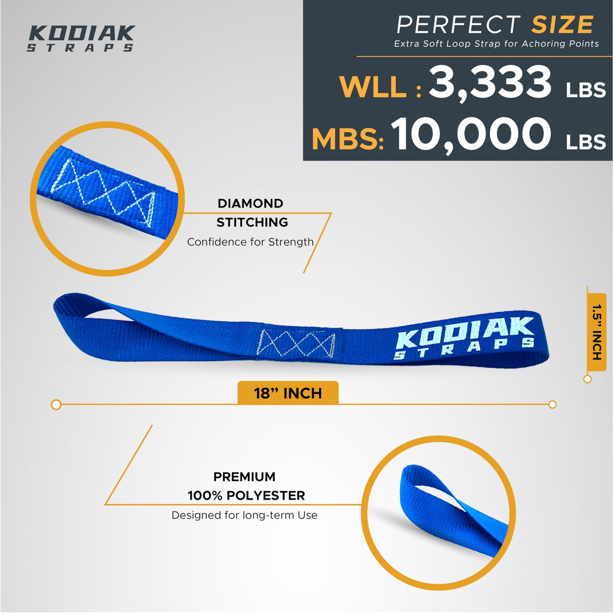Soft Loop Tie Down Straps - 1.5 X 18 Inches- 10,000 Lb Load Capacity - Blue 6 Pack - Loops For Securing Atv, Utv, Motorcycles, S