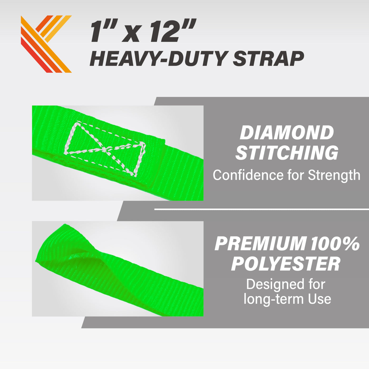 Soft Loop Tie Down Straps - 1 X 12 Inches- 4,500 Lb Load Capacity - Green 6 Pack - Loops For Securing Atv, Utv, Motorcycles, Sco