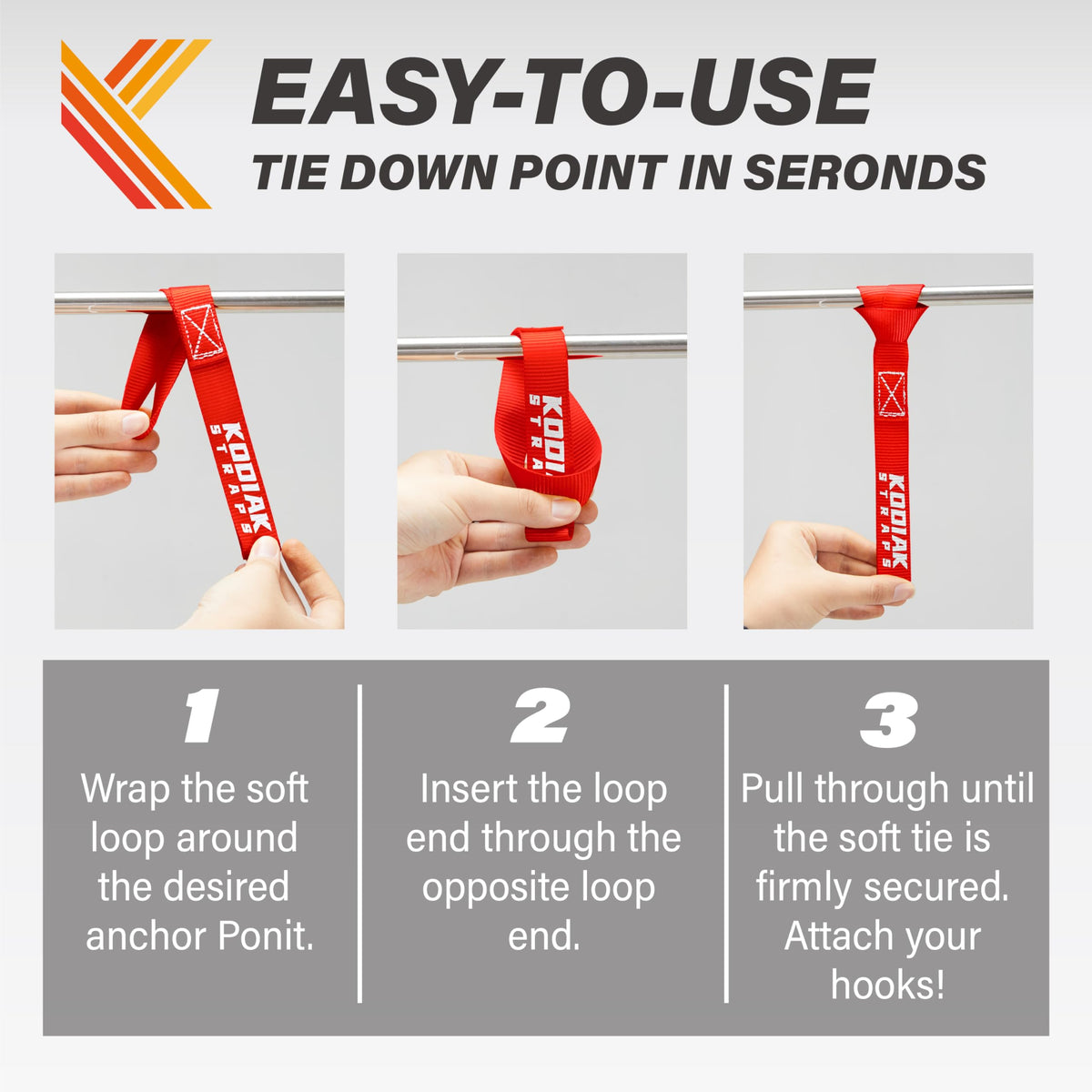 Q: Is the 6-pack of soft loop tie downs a good value for money?A: Absolutely! The 6-pack provides a great value for money, allowing you to have multiple straps on hand for securing larger loads or for use across different vehicles and equipment.