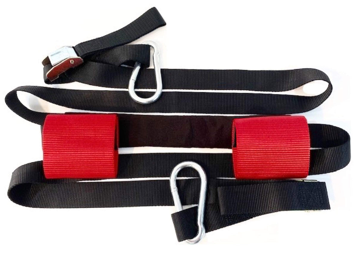 Combination Motorcycle Tie Down & Soft Bar Harness 1.5' Inch Wide, Heavy Duty Cam-Buckles Max Strap Length 4 1/2 ' Foot Each Side Of Bike Large 2' Metal Clips , Transporting And Tying Down Your Bike Made Easy Tie Down Soft Loop Handlebar Straps Trailer Hauling Handle Bars Secure Yamaha Kawasaki Suzuki Honda Ducati 2' Clips 1.5' Wide Strap Motorcycle Bar Harness Ring Clip Rings Sport Bike Crotch Rocket Atv