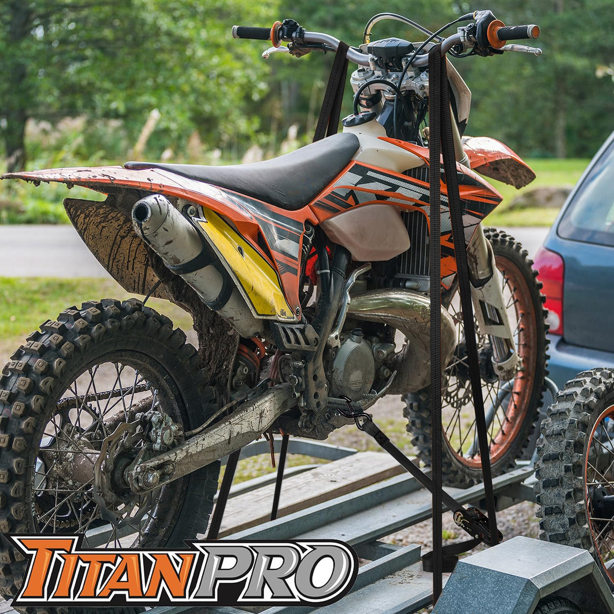 Q: Can I use TitanPro Ratchet Straps for motorcycle tie-downs?A: Absolutely! The TitanPro Ratchet Straps are ideal for motorcycle tie-downs, providing the strength and reliability needed to secure your bike during transport.
