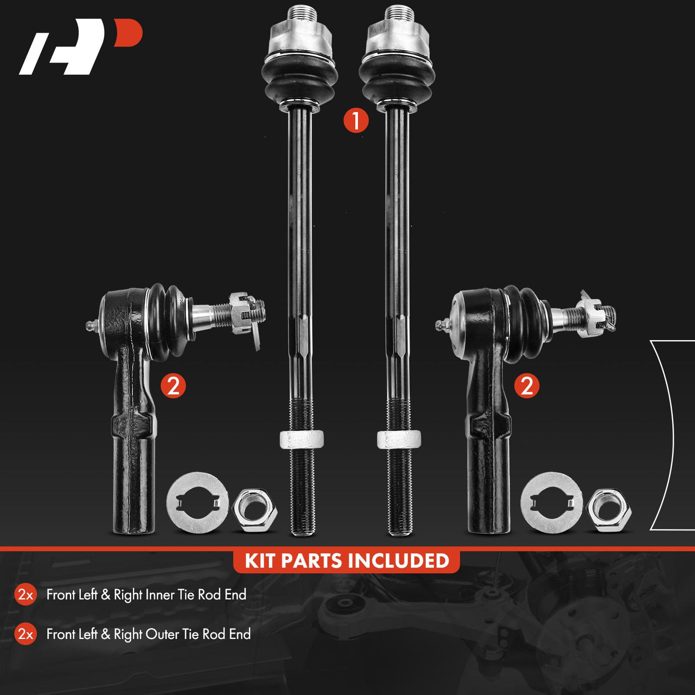 A-Premium 4Pcs Front Inner & Outer Tie Rod End Links Kit, Compatible with Chevrolet & GMC & Hummer - 2001-2019 - Silverado Sierr