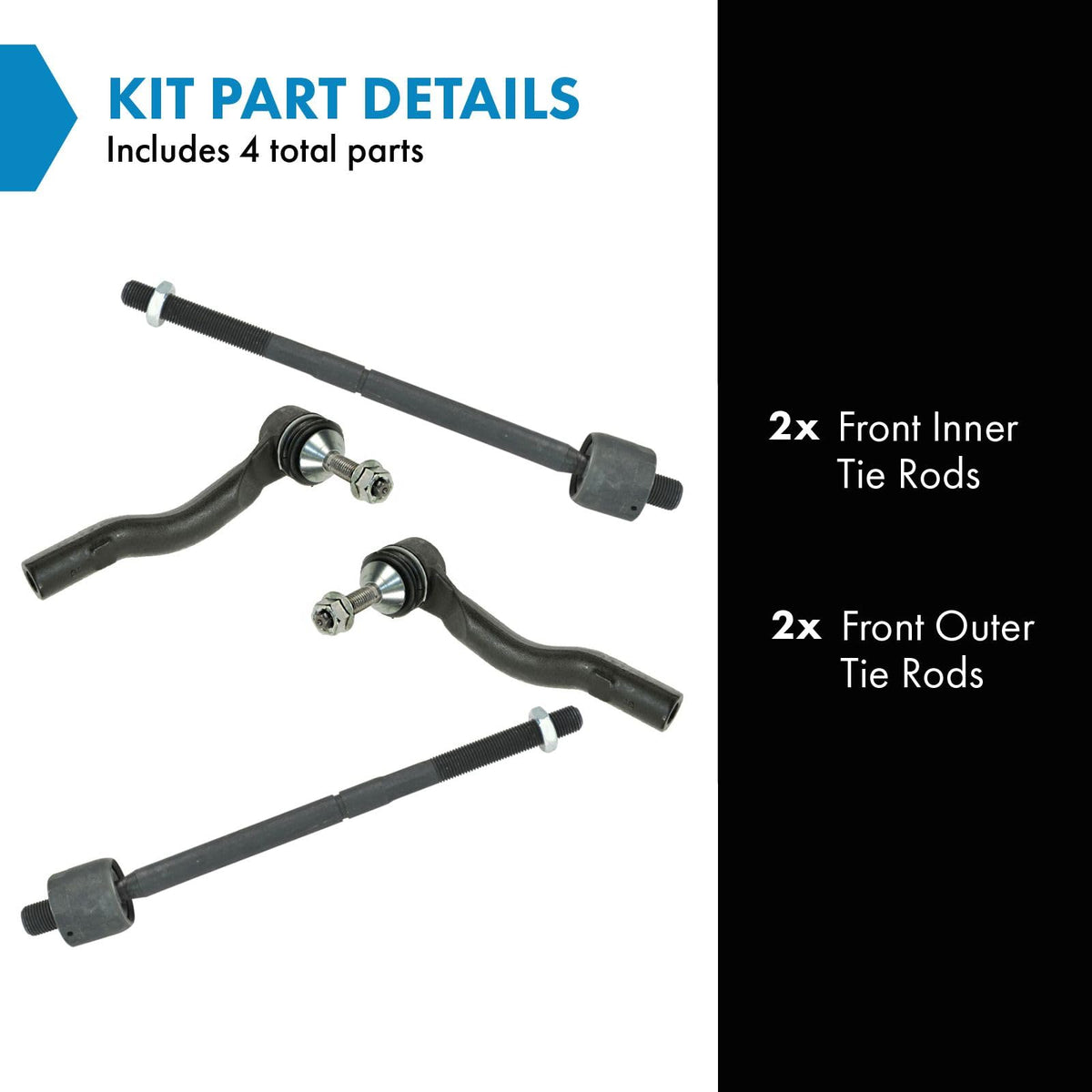 4 Piece Tie Rod SetKit Includes(2) Front Inner Tie Rods(2) Front Outer Tie RodsFitmentCompatible with: 2003-11 Mercury Grand Marquis Front Driver & Passenger Side Inner & OuterCompatible with: 2003-11 Lincoln Town Car Front Driver & Passenger Side Inner & OuterCompatible with: 2003-11 Ford Crown Victoria Front Driver & Passenger Side Inner & OuterCompatible with: 2003-04 Mercury Marauder Front Driver & Passenger Side Inner & OuterProduct AttributesQuantity: 4 PieceReference NumbersDIY Solutions: SUS02398, SUS07614, SUS07658, SUS07659Ford: 3W1Z3280BA, 3W1Z3A130AA, 3W1Z3A130AB, 3W1Z3A130BA, 3W1Z3A130BB, 6W1Z3A130A, 6W1Z3A130B, 8W7Z3280AMevotech: MES3693, MES3694, MEV455MOOG Chassis Products: ES3693, ES3694, EV455
