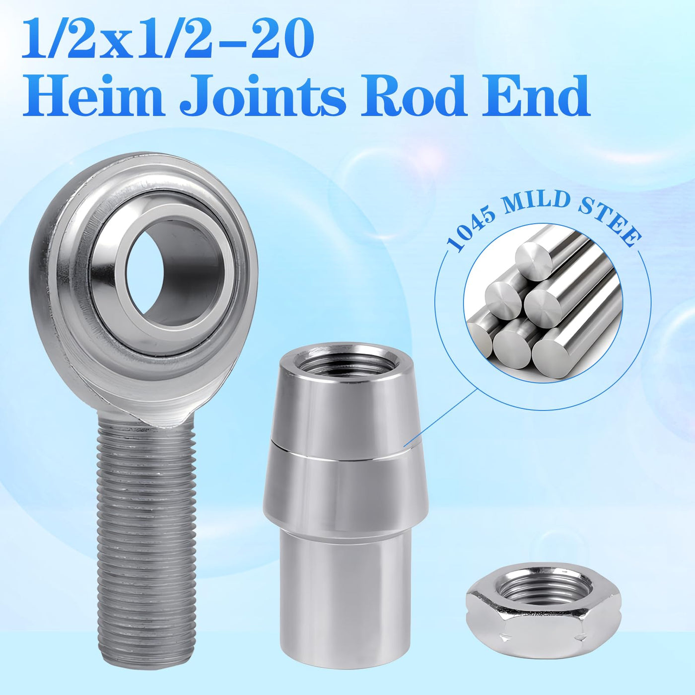 YIFUOK 1/2 x 1/2-20 Heim Joints Rod End Kit .065 Bungs with Jam Nuts,RH & LH Hand Thread Chromoly Panhard Bar for Steering and S