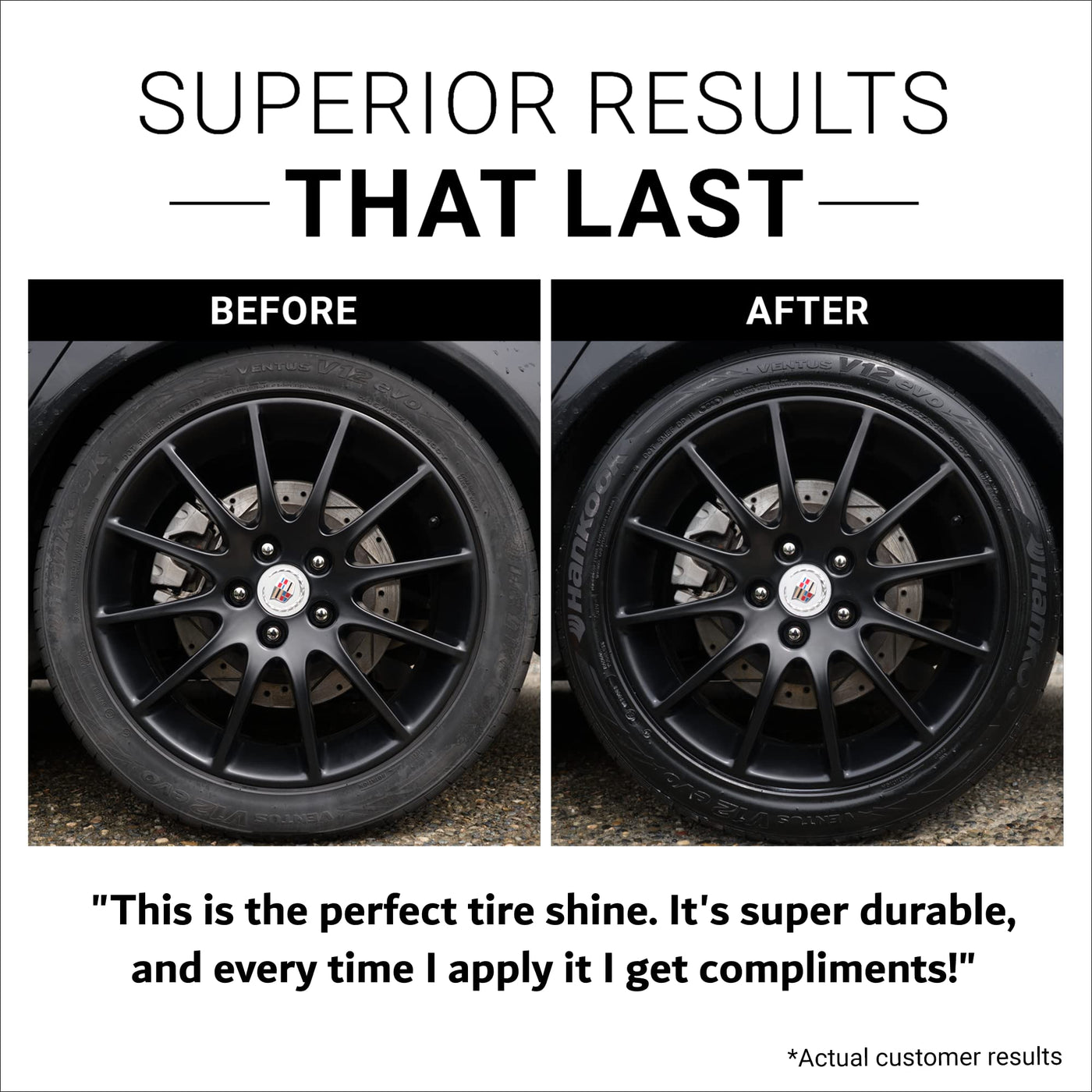 CAR GUYS Tire Shine is a non-greasy, dry to the touch formula that is super quick & easy to use! Lets you decide your desired level of tire shine, provides long lasting UV protection, and like all our products, it’s mixed, bottled, and made in the USA!