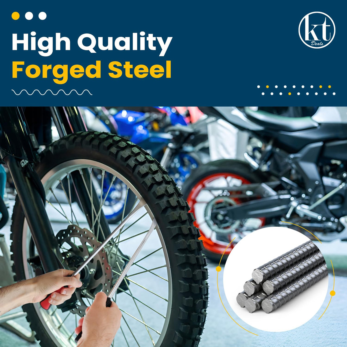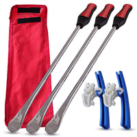Upgrade your tire-changing tools with our premium 14.5-inch tire spoon set. Made from hardened steel, these heavy-duty tire levers provide the perfect balance of strength and durability for effortless tire removal and mounting. Whether you're working on motorcycles, dirt bikes, bicycles, ATVs, scooters, lawnmowers, trailers, or small vehicles, this 3-piece tire iron set ensures a smooth and hassle-free experience. Perfect for Various Vehicles – Works with motorcycles, dirt bikes, road bikes, BMX bikes, mountain bikes (MTB), scooters, ATVs, UTVs, golf carts, lawnmowers, wheelbarrows, trailers, and more. Heavy-Duty Steel Construction – Built with high-strength steel, these tire levers withstand heavy use, making them ideal for garage, professional mechanics, and DIY tire repairs. Ergonomic & Easy to Use – Designed for maximum leverage and grip, our tire spoons provide a secure hold for effortless tire removal and installation without damaging rims. Scratch-Free & Rim-Safe Design – The rounded and smooth edges help prevent damage to motorcycle and bicycle rims, ensuring a safe and efficient tire-changing process. Complete 3-Piece Set – Get the ultimate tire repair kit with three 14.5-inch tire spoons, perfect for handling tire changes at home, in your garage, or on the go. Ideal for motorcycle enthusiasts, bike riders, professional mechanics, and DIY repair experts, this steel tire iron set is a must-have for anyone needing fast, reliable tire changes.
