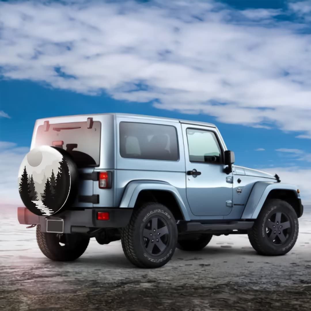 Abstract Moon Spare Tire Cover Mountain Tree Waterproof Dust-Proof Universal Spare Wheel Tire Covers 15 Inch Fit For Rv Trailer