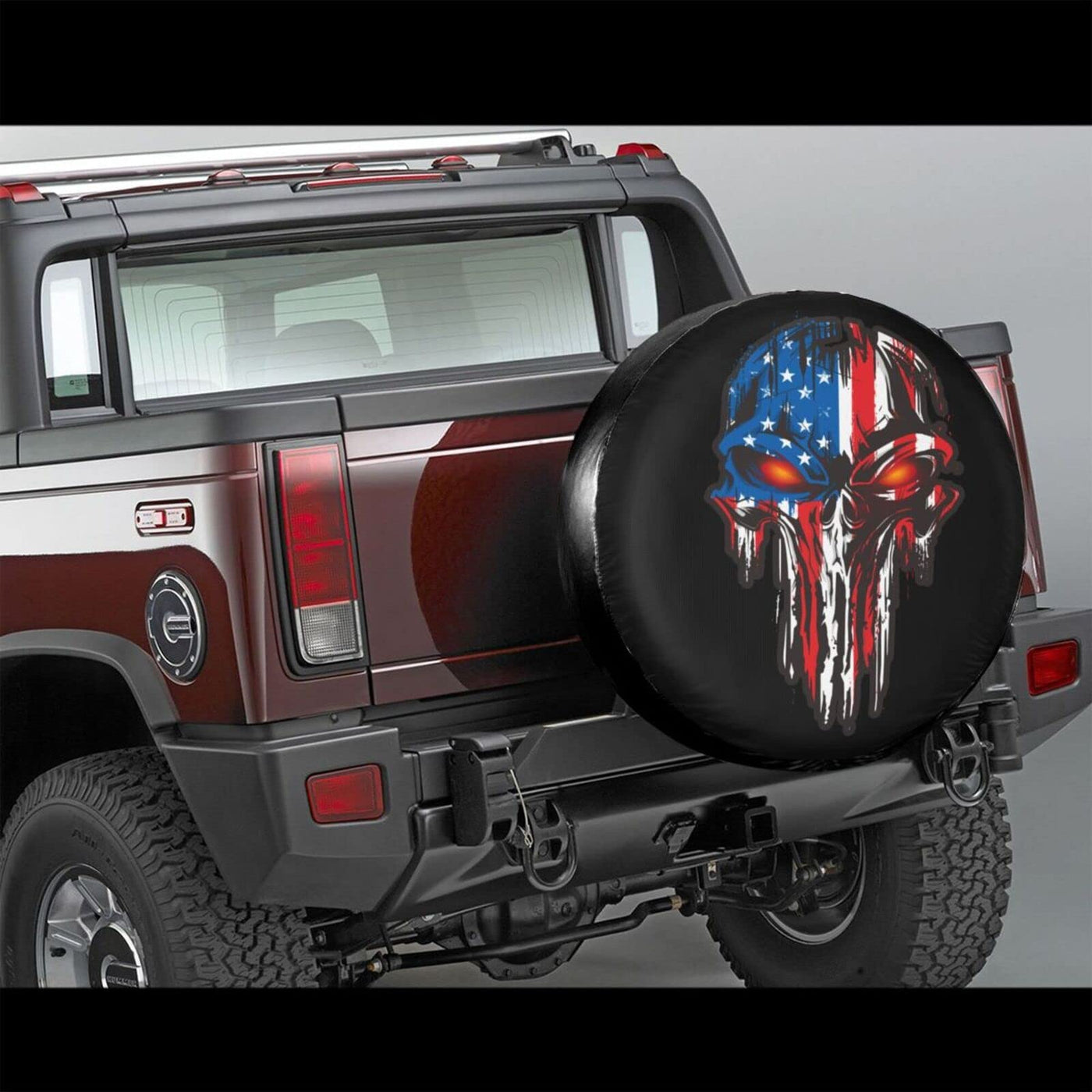 Q: What vehicles are compatible with the American Flag Skull Tire Cover?A: The American Flag Skull Tire Cover is designed to fit a wide range of vehicles including Jeep Wranglers, trucks, RVs, campers, SUVs, and trailers. Ensure you select the correct size based on your tire diameter, which for this model is suitable for tires measuring 29 to 31 inches.