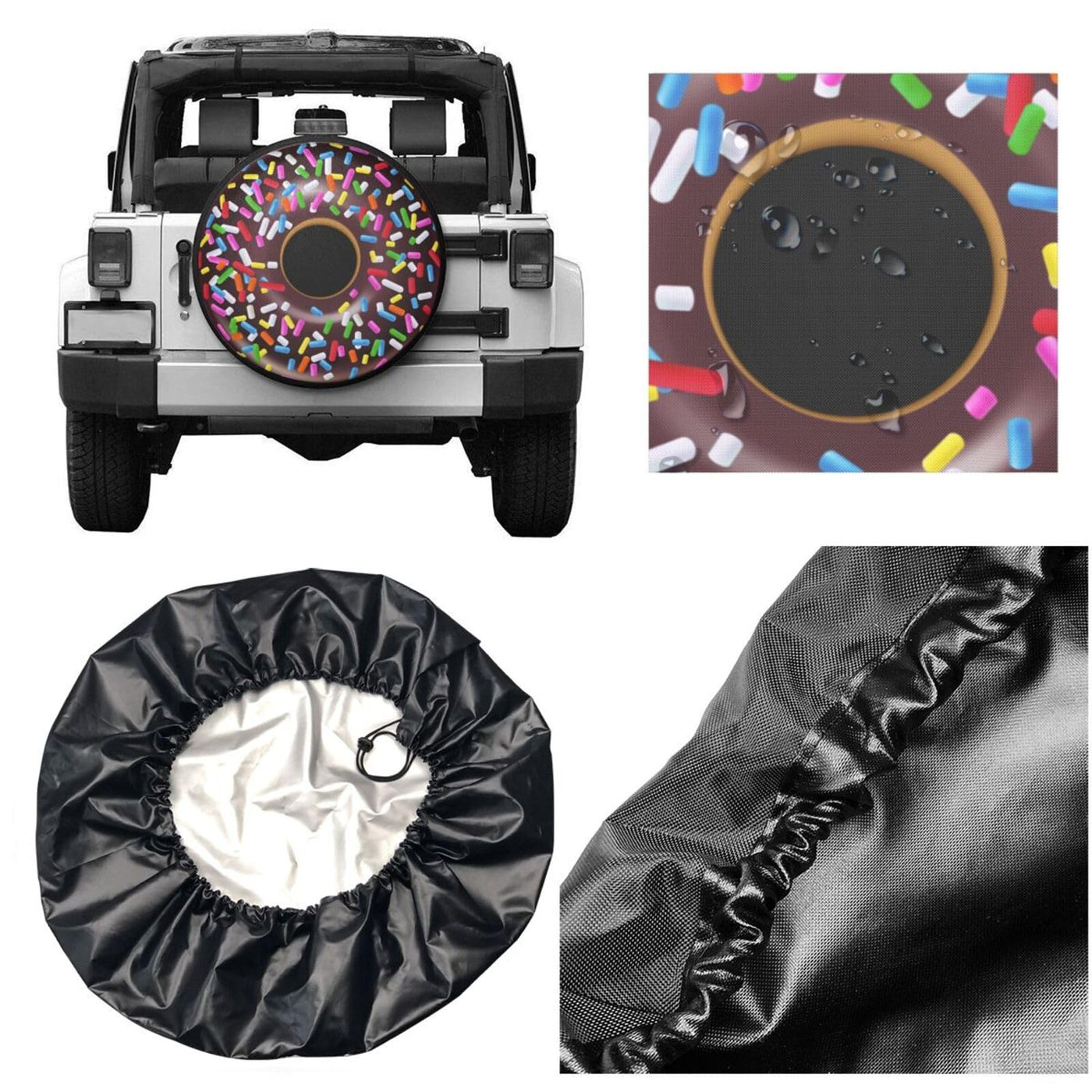 Are you still worried about your spare tire being exposed to the sun for a long time or being eroded by rain, snow and wind? If your spare tire is located on the outside of your vehicle, it is vulnerable to the elements and at risk of damage from dirt, debris, and changing weather conditions.Purchasing a spare tire cover is the best way to avoid spare tire damage and protect the value of your vehicle.How to calculate your tire's diameter?Check tire parameter on the tire's sidewall, which will tell your tire diameter, or just measure the diameter from the bottom to the top of the tire. Then pick the appropriate cover size from our sizing chart. If you are unsure what size is installed on the vehicle please contact me with the information and I will tell you what size you need to order.Size Guide:Cover Size 14'' fits for tire diameter 60-69cm/23.6''-27.1''Cover Size 15'' fits for tire diameter 70-75cm/27.6''-29.5''Cover Size 16'' fits for tire diameter 76-79cm/29.5''-31.1''Cover Size 17'' fits for tire diameter 80-83cm/31.5''-32.6''If your tire is written with P225/65R17.Tire diameter = 22.5*0.65*2+17*2.54 = 72.43cmYou need to buy the 15 inch.If your tire is written with P205/55R16.Tire diameter = 20.5*0.55*2+16*2.54 = 63.19 cmYou need to buy the 14 inch.Specifications:Material: high quality polyester fabricPackage: 1pcs wheel tire coverSize: 14 inch, 15 inch, 16 inch, 17 inchFitment: The tire covers fit for trailer, motorhome, RV, SUV, truck and many vehicle.Clean Instruction: The tire protector is easy to clean, just wipe it clean with water.Easy to install and remove without any tools.