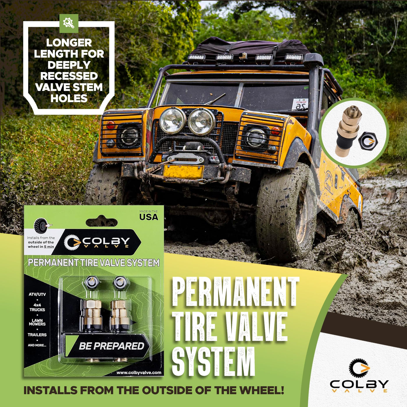 Colby Valve Permanent Valve Stem Replacement Kit | Heavy Duty Metal Emergency Valve Stems For Tubeless Tires | Quick Install From Outside Of The Wheel | Made In Usa From Quality 360 Brass Components