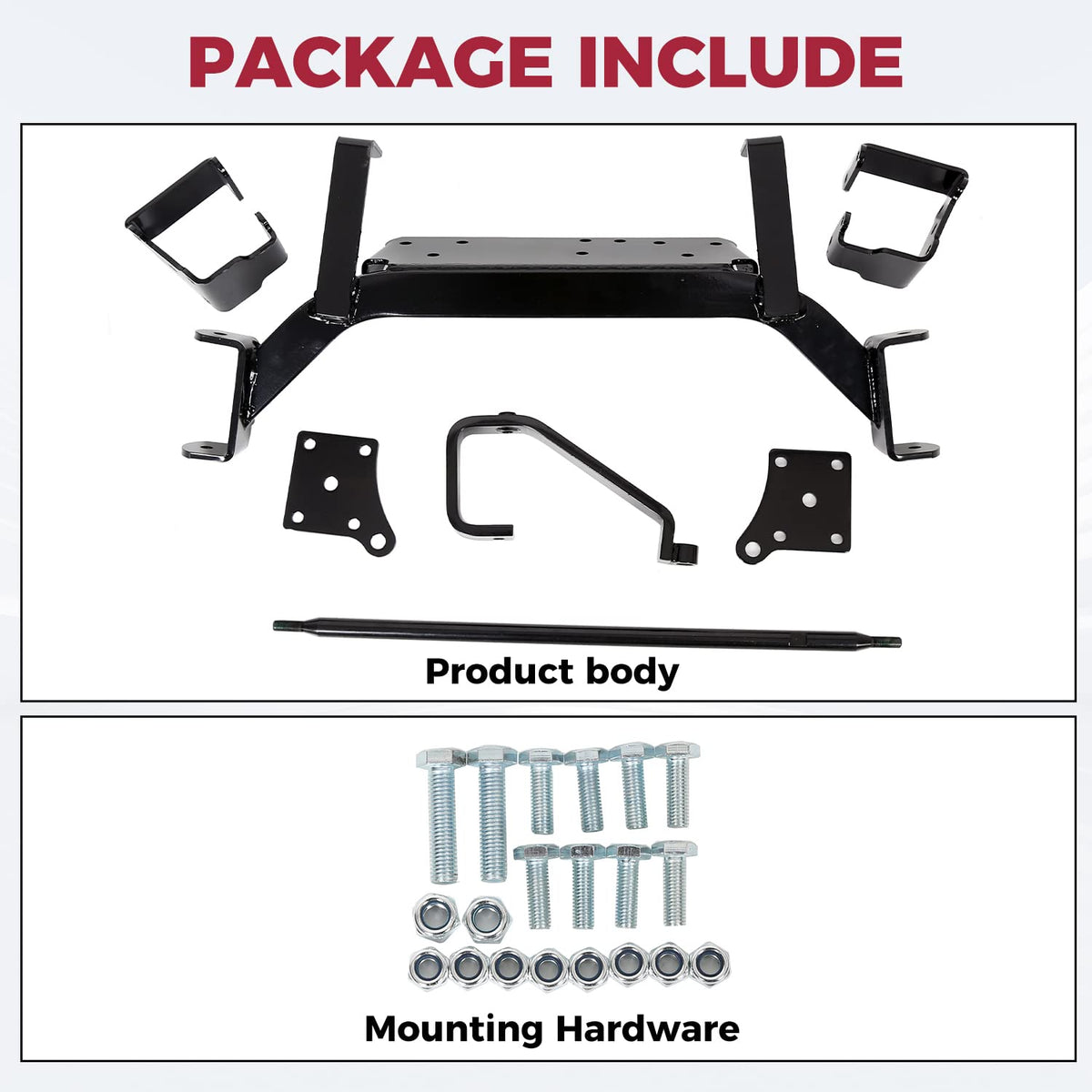 Q: Is there any maintenance required after installing the lift kit?A: After installation, regular checks on the hardware and components are recommended to ensure everything remains secure and in good condition. Make sure to periodically inspect for wear and tear, especially after extensive use.