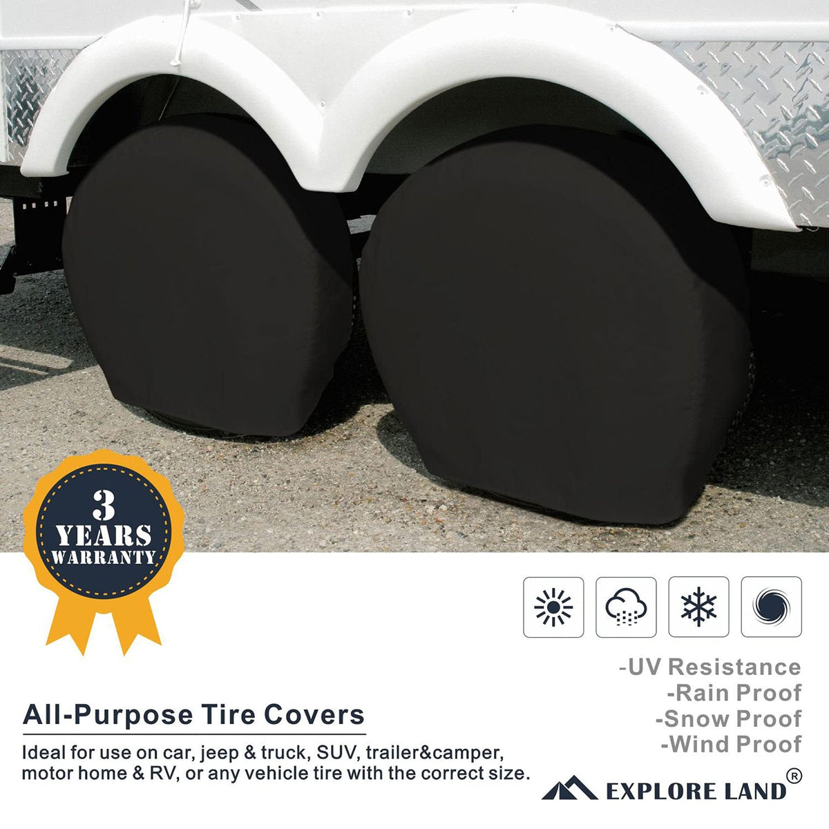 Explore Land Tire Covers 2 Pack - Tough Tire Wheel Protector For Truck, Suv, Trailer, Camper, Rv - Universal Fits Tire Diameters 23-25.75 Inches, Black
