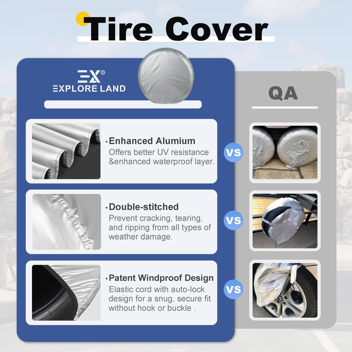 Explore Land Weatherproof Tire Covers 4 Pack Alumium Wheel Protector For Truck, Suv, Trailer, Camper, Rv,S (Fits Diameter 32 ''-