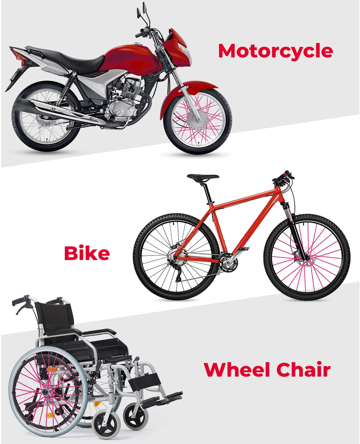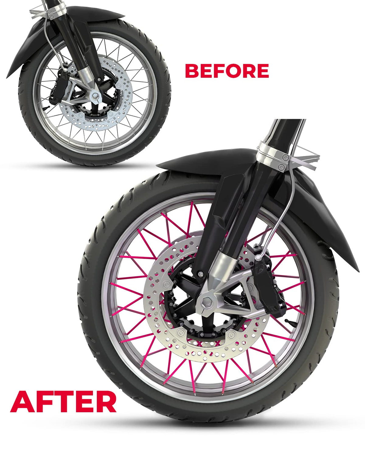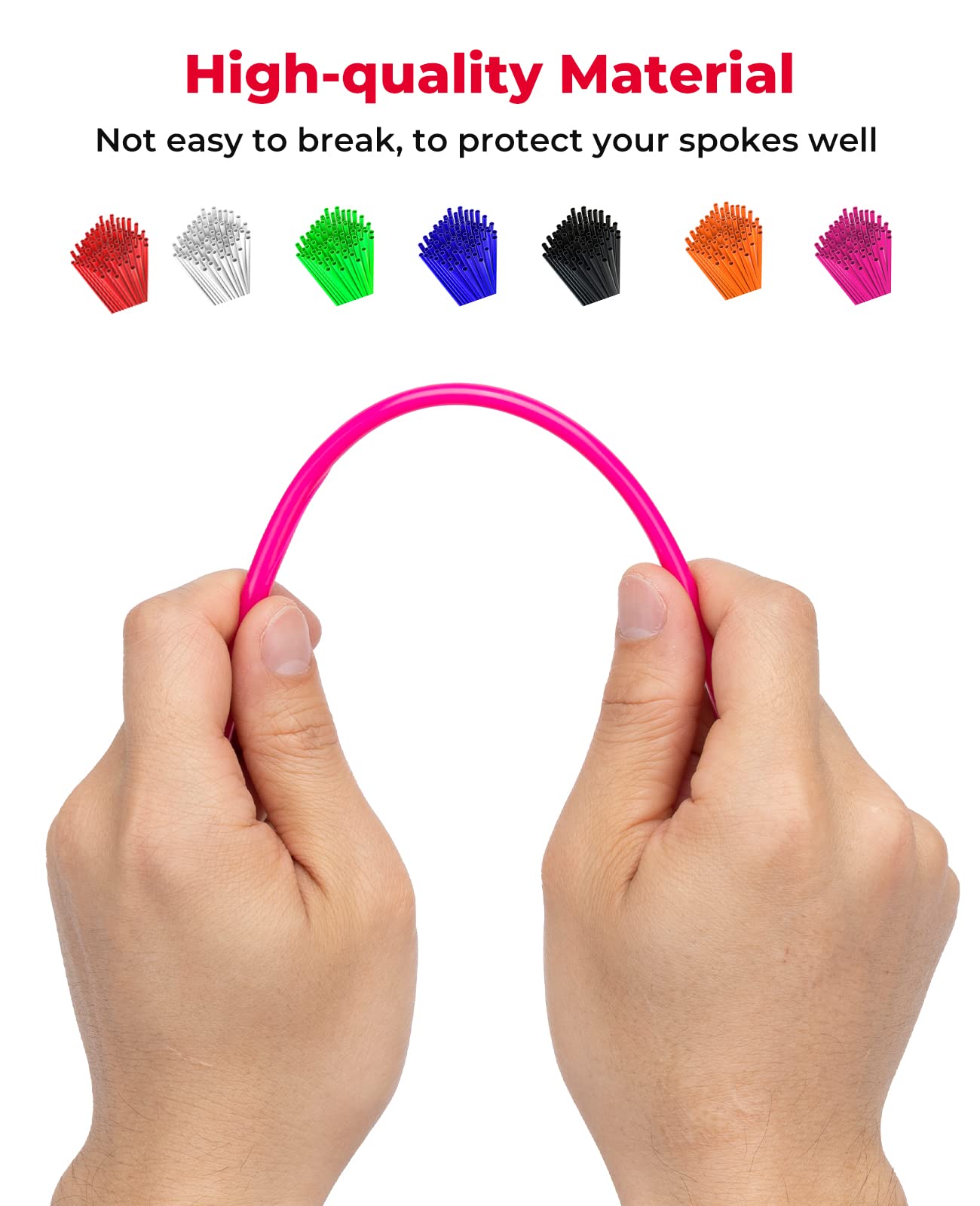 ?Wide Compatibility?Universal Pipe Trim For 8'-21' Wheels, Spoke Rims Wraps For Most Dirt Bikes, Motocross, Motorbikes, Bikes, Mountain Bikes, Bicycles, Kids Bikes, And Wheelchairs. Including But Not Limited To Dirt Bike, Dual Sport, Motocross, Enduro Motorcycles, Off-Road Motorcycles, And Adventure Touring Motorcycles. ?Protect Spokes Rusty & Never Break Off?Dirt Bike Spoke Cover Brings A New Decor Look To Your Dirt Bike, And Covers The Old Rusty Rims Spoke, Which Can Protect The Spoke From Dirt To Increase Spokes Life. The Covers Are Tightly Stuck To The Spokes, And Even When The Wheels Are Running At High Speed, It Does Not Fall Off. ?Diy Colorful Wheels?Made Of High-Quality, Tough Plastic Material. Dirt Bike Spoke Covers Are Fuel, Uv, And High Temperature Resistant. Includes 5 Color Options, Bright Color And Not Easy To Fade, No Toxic Or Other Smells, Bring Your Motorcycle Spokes A More Fashionable And Custom Look. ?Easy Installation & Disassemble?No Glue Or Other Fasteners Are Required. Trim Your Needed Length According To The Spokes, There Is A Slit On The Side Of The Spoke Cover, Open The Spoke Cover, And Press It Into The Spokes For Installation. Easy To Open The Spoke Covers And Bend Recover Fast. ?Package Include & Why Choose Us?Package Includes 72 Pcs Spoke Skins Which Are Enough Use For Two Wheels. At Kemimoto, We Fully Stand Behind Our Spoke Covers. If You Don'T 100% Love Our Spoke Covers, Please Don'T Hesitate To Contact Us, And We Will Provide You With The Best Solution In Time.