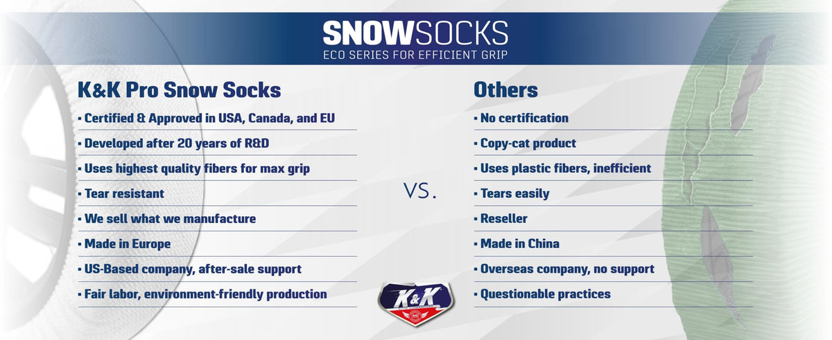 KNK Boutique Automotive Snow Socks for Tires - Eco Series for Efficient Grip Alternative for Tire Snow Chain - Snow Traction Dev