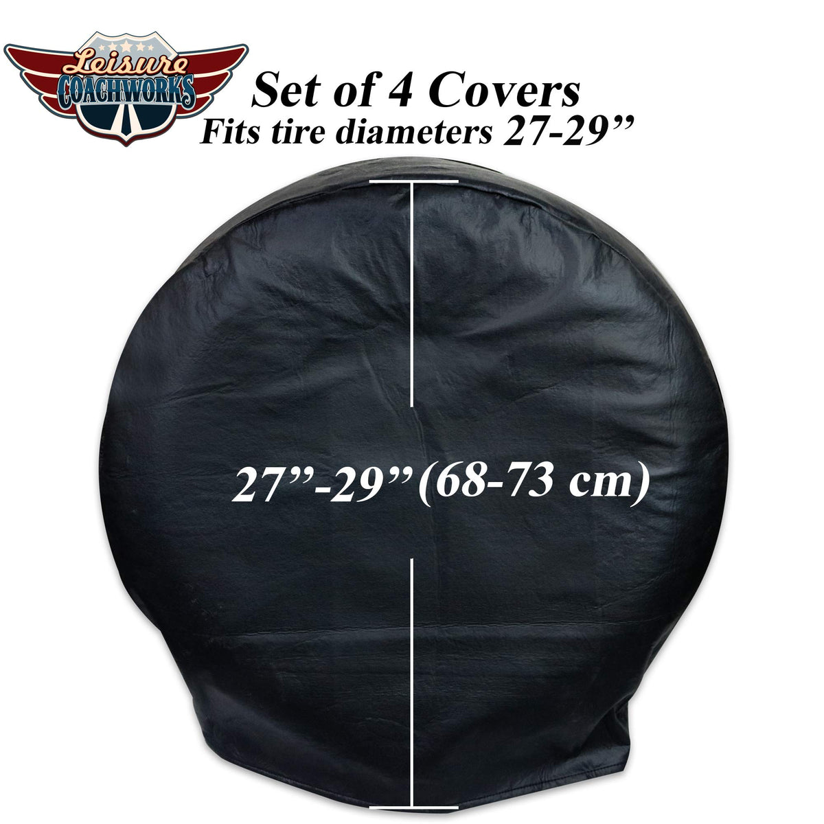 Leisure Coachworks Tire Covers For Rv Wheel Set Of 4 Motorhome Wheel Covers Black Waterproof Soft Vinyl Tire Protectors Tire Cov