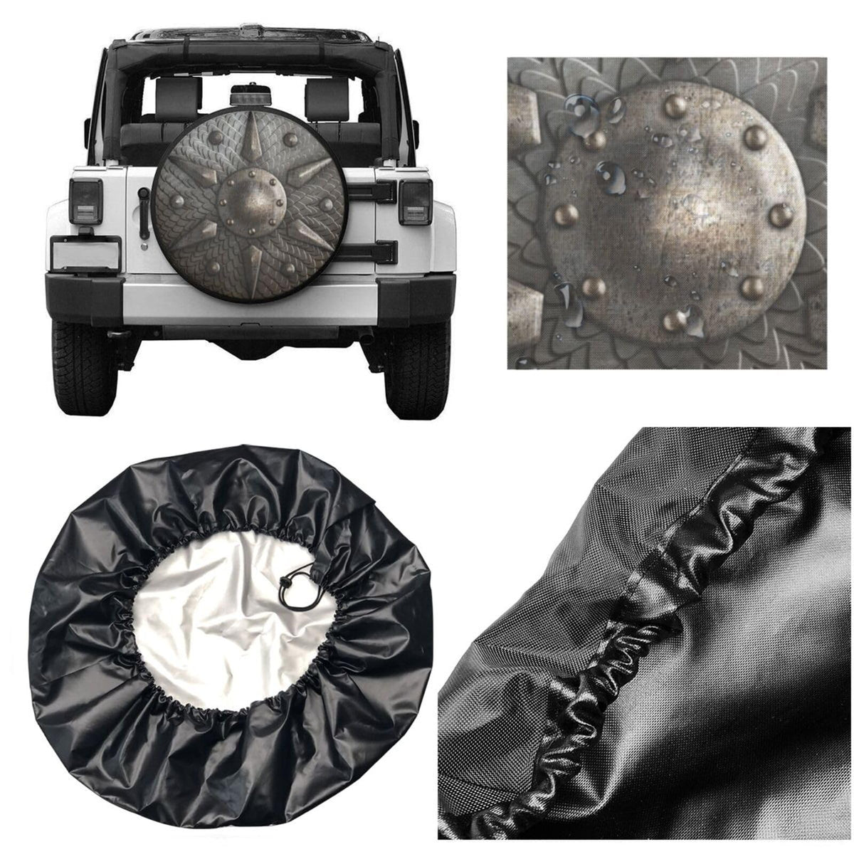 Round Metal Shield Viking Spare Tire Cover Retro Medieval Tire Wheel Covers Weatherproof Wheel Tire Protector Waterproof Tyre Co