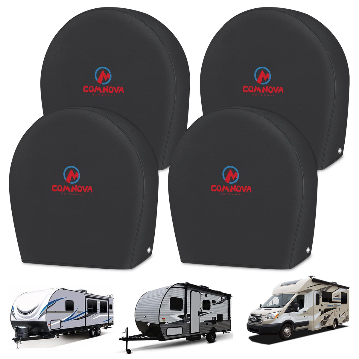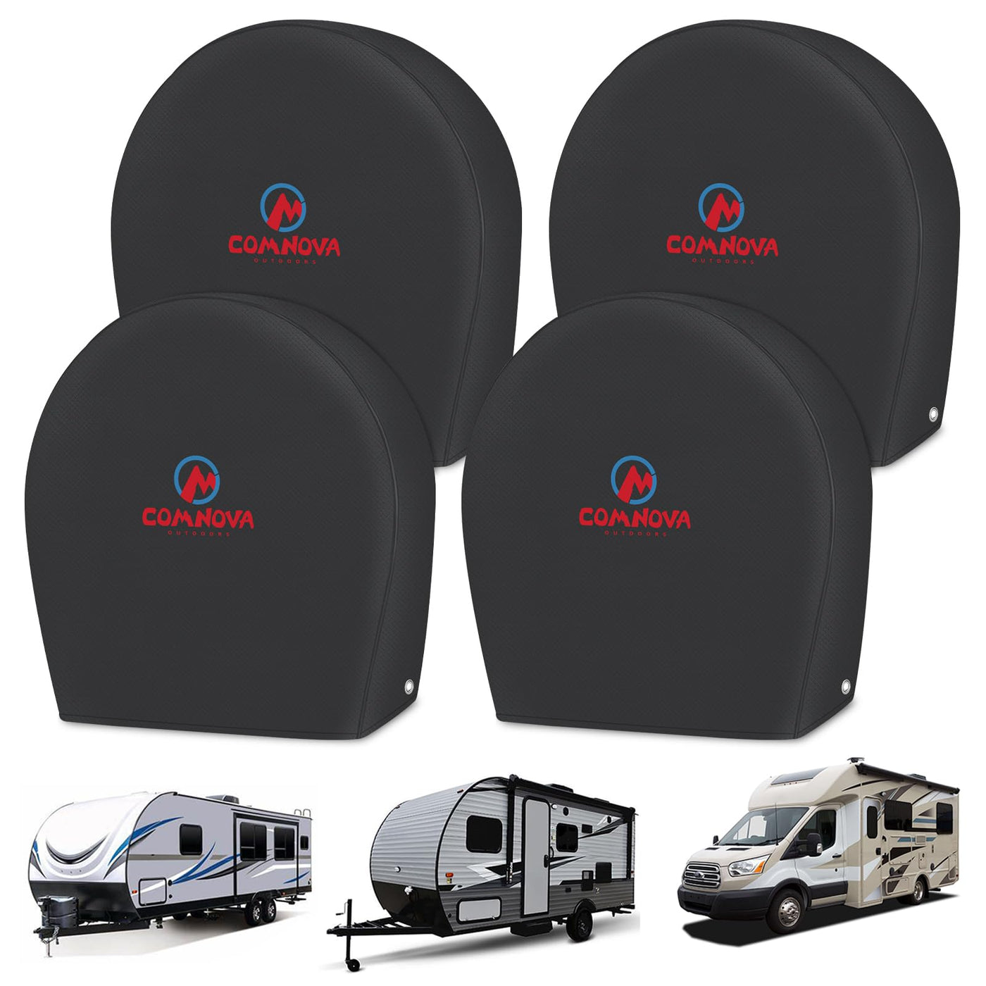 Features Of 4 Packs Rv Wheel Tire Covers: Heavy-Duty Material Rv Tire Coverade Of 600D Pu Oxford, Comnova Waterproof Tire Cover Have Better Flexibility And Tensile Strength Than Vinyl, Non-Woven Fabric, 600D Oxford Pu Coating Material Will Be More Breathable And Better To Prevent Rust 4 Packs 26-29 Tire Coverits 26Aa - 29Aa Tire Diameters Universal Used On Rv, 5Th Wheel, Travel Trailer, Class A, Class C, Motorhome, Jeep, Camping, Truck **Note: If Your Tire Diameter Is Just 29Aa, It Would Be Better To Choose Larger Size (26-29) Tire Cover With Hook Design Elasticized Back Hem And Hook For You To Keeps The Tire Protectors Stay On The Rv Wheel Securely Even On Windy Days, It Is Easy To Put On Or Remove Unctional Rv Tire Coversthis Rv Tire Covers Can Help Prevent Premature Cracking Of Sidewalls That Can Lead To On-Road Blowouts, Prolonging The Lifespan Of Your Tires, As Well As Protect The Wheel And Tire From Dust, Corrosion, Dry Rot, Snow, Ultraviolet And High Temperature Wind Resistant Tire Coverelasticized Back Hem And Hook Design For A Secure Fit The Cord Keeps The Tire Cover Stay On The Wheel Even On Windy Days Easy To Install And Remove Warm Prompt: 1Please Measure The Distance Across The Center Of The Front Of The Tire From Edge To Edge And Then Measure The Depth Of The Tire Itself 2Dont Need To Choose The Bigger One, As The Elasticized Back Hem & Hook Would Provide You A Custom Fit And Easy Installation Covers Tire Wheel Rv Cover For Trailer Inch Set Of Trailers Camper Travel Tires Syeral Pack Motorhome Dual Up Trucks Truck Shade Rvtire Rvs Rav Pop Motorhomes Marine Magne Large Hub Heavy Eluto Duty Corp Camping Campers Bus Boat