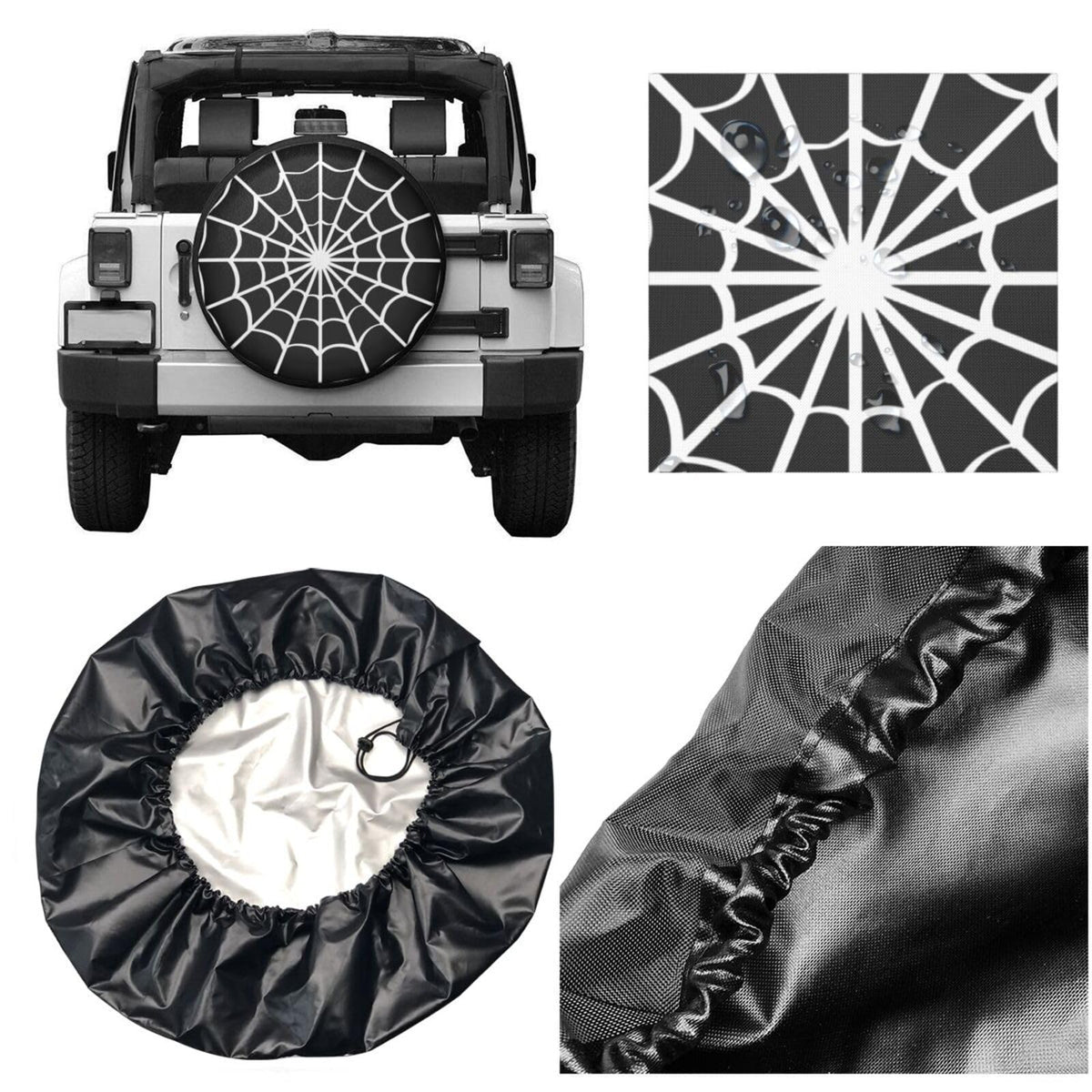 Spider Web Black Spare Tire Cover Waterproof Dust-Proof Tire Wheel Covers Weatherproof Wheel Tire Protector UV Sun Protection Ty