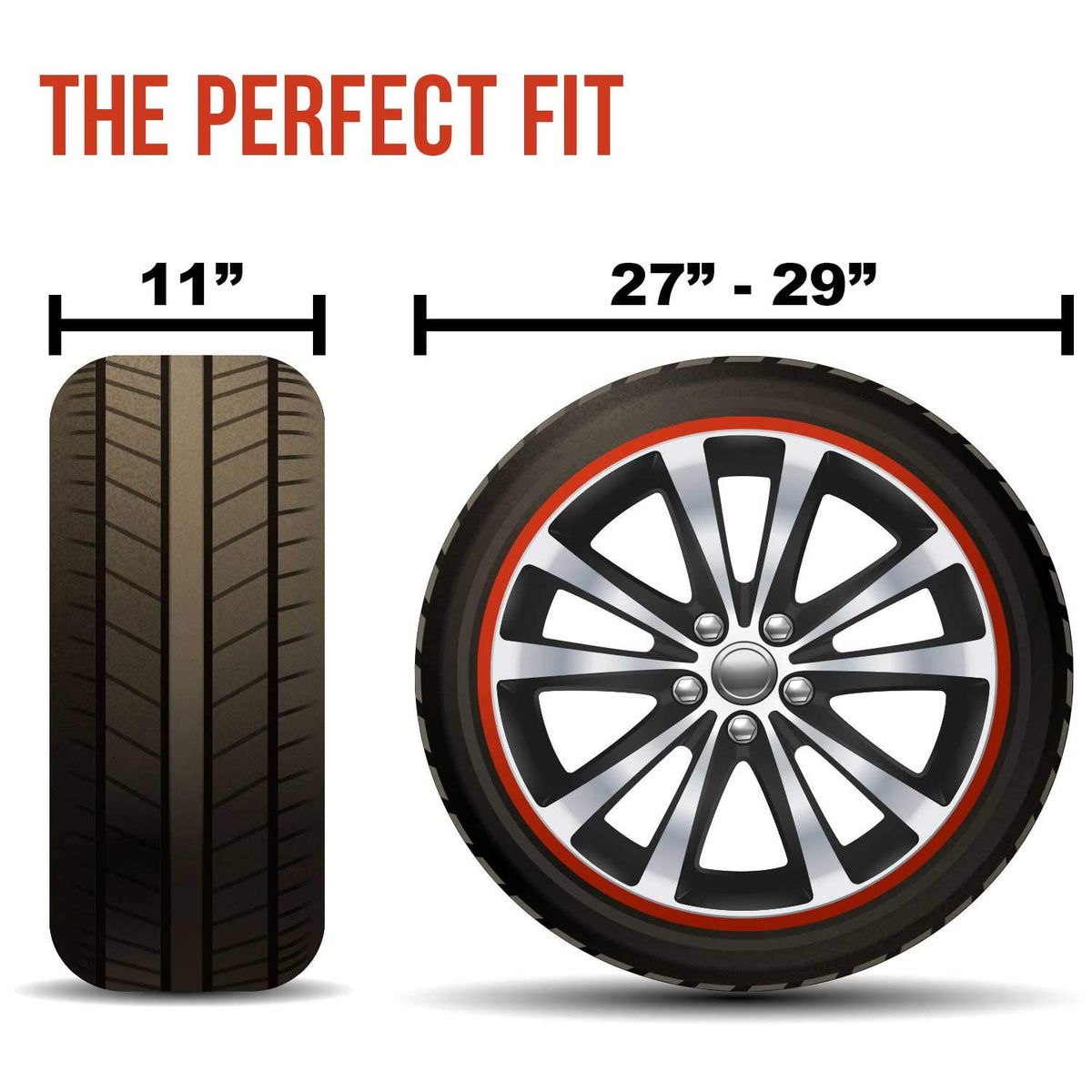 Q: What size tires do these covers fit?A: The TCP Global Set of 4 Oxford Waterproof Canvas Wheel Tire Covers fits tire diameters ranging from 27 inches to 29 inches.