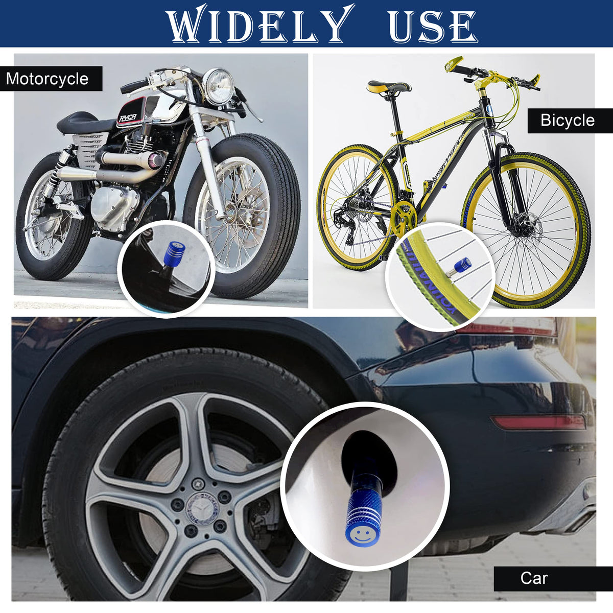 Tire Caps 4 Pack,Universal Tire Valve Caps,Tire Pressure Caps With O Rubber Ring,Corrosion Resistant Leak-Proof, Metal Air Valve Stem Caps For Cars Tires Suvs Bicycles Trucks Motorcycles Blue Smiley