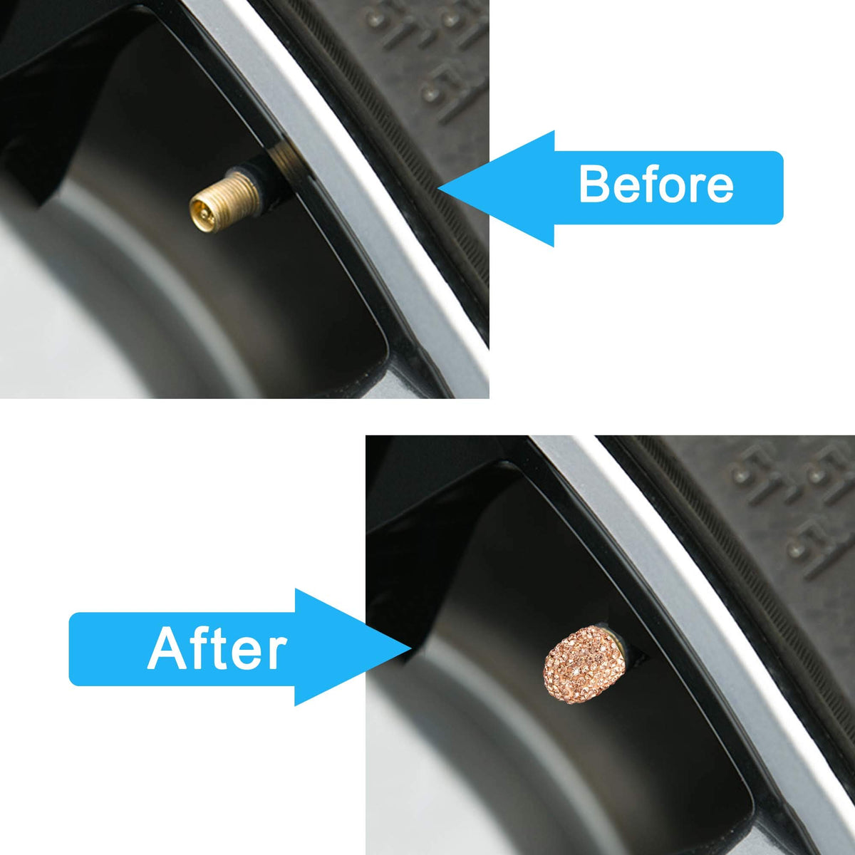 Valve stem caps are made of ABS plastic, coated with polymer clay and embedded with rhinestones, anti-rust can effectively prevent the valve from being covered with dust, snow, rainwater, extending the life of the tire.