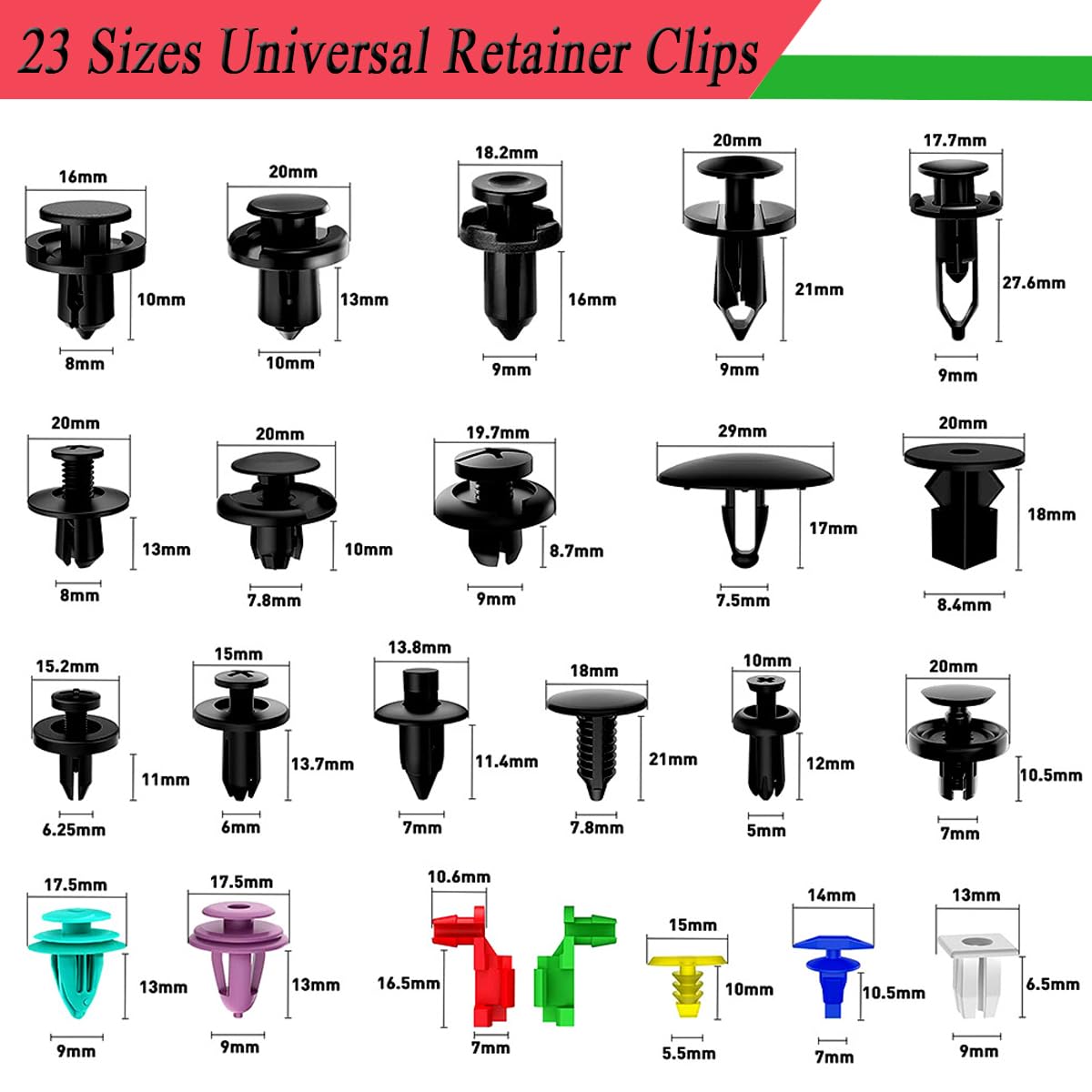 Universal Car Retainer Clips Automotive Plastic Fastener Kit : This Kit Includes 23 Of The Most Common Sizes Of Fastener Clips, Suitable For Oem Replacements With 6-10Mm Hole Sizes, And You Will Always Have The Appropriate Size.