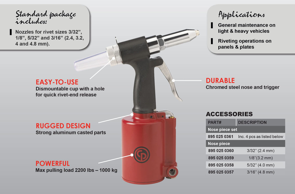 Chicago Pneumatic Cp9882 - Air Riveter, Mechanic Tools, Construction, Home Improvement, Air Gun Tool, Blind Rivets, Max Rivet Si