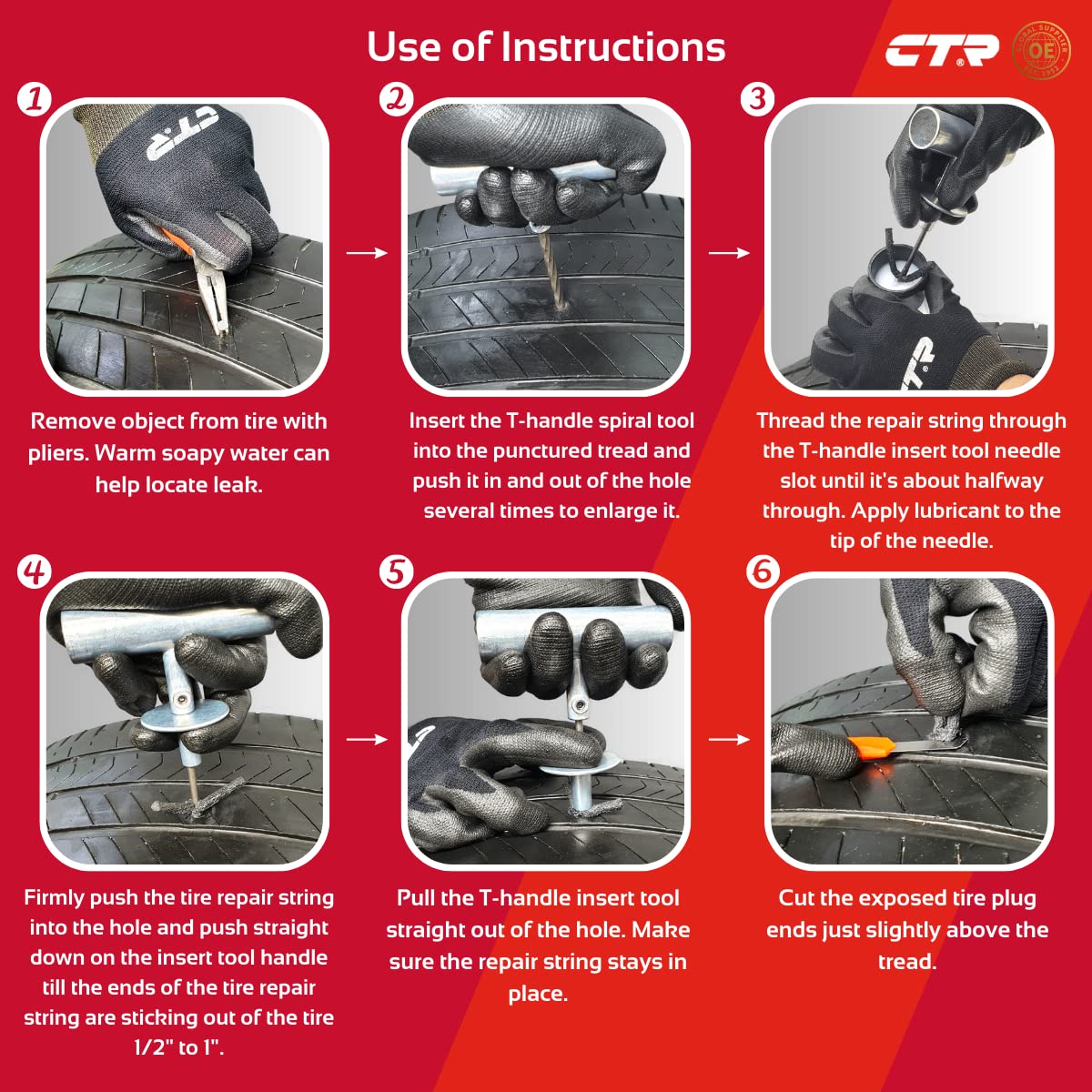 Q: Is the tire repair kit easy to use for beginners?A: Yes, the CTR Heavy Duty Tire Plug Kit is designed with ergonomically shaped tools and comes with a comprehensive instructions manual, making it easy for beginners to perform tire repairs without prior experience.