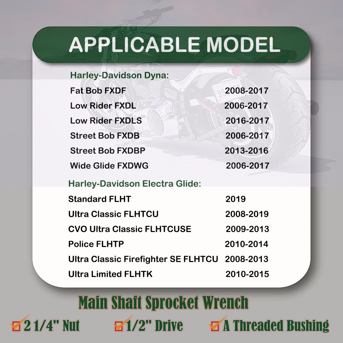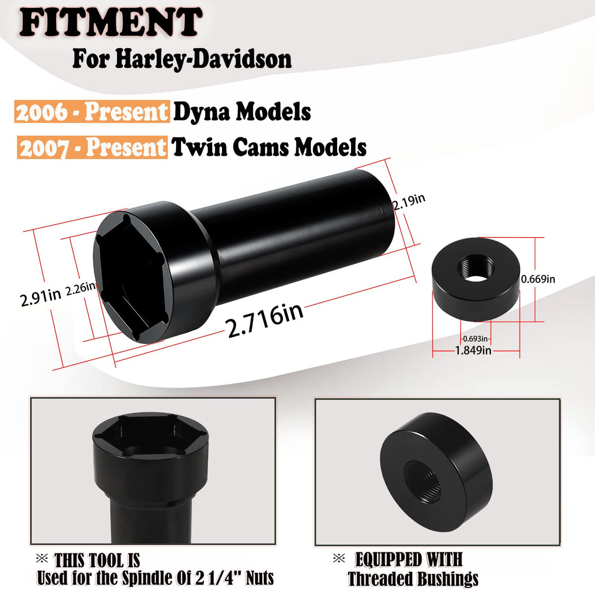 Compatible With: 2007 - Present/now For Harley Twin Cams 2006 -Present/now For Harley for Dyna This tool is a Main Shaft Sprocket Wrench Tool for the 2 1/4'' Nutl comes with a threaded bushing. Condition: New