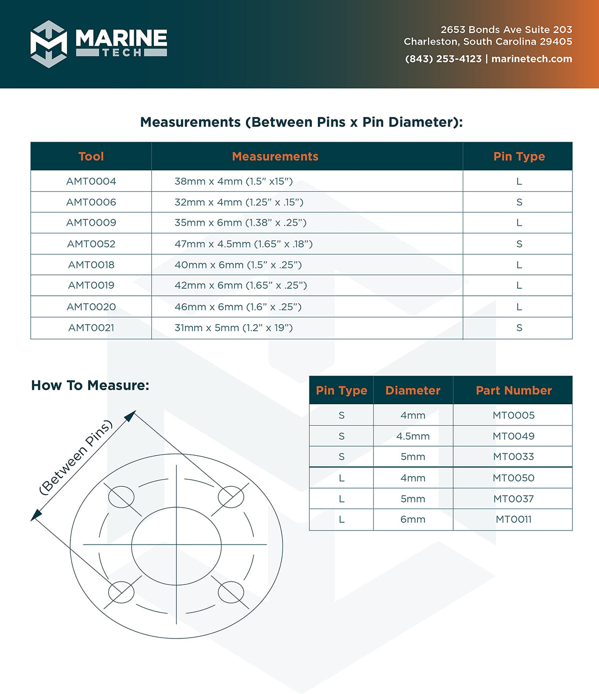Q: Are the pins in the pin spanner wrenches replaceable?A: Yes, the pins in the Marine Tech Tools pin spanner wrenches are replaceable. This feature adds versatility and allows you to extend the lifespan of your tools by replacing worn pins instead of purchasing new wrenches.