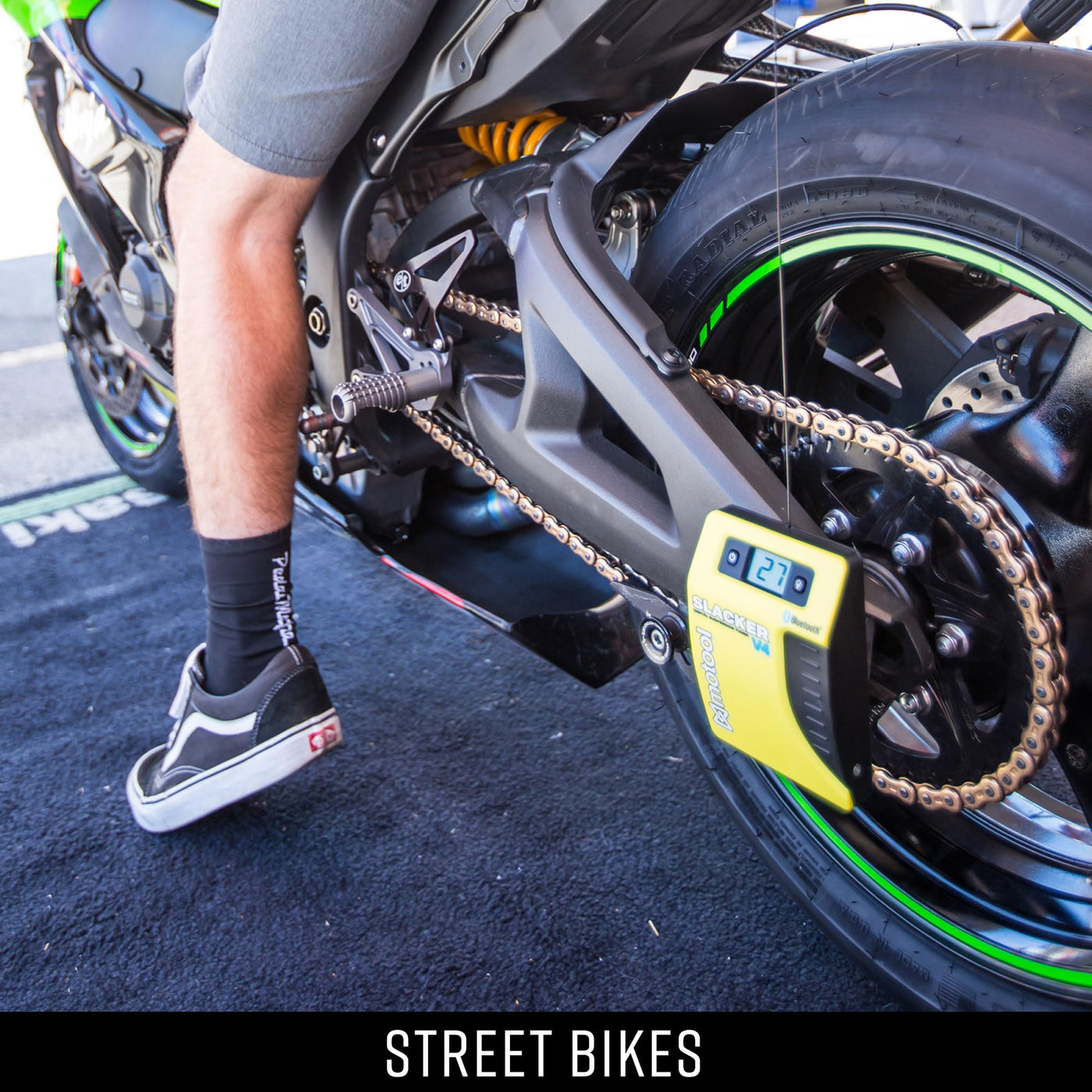Motool Slacker Digital Suspension Tuner is designed for professionals to beginners to easily dial in their suspension settings with no assistance required. This easy-to-use, patented suspension tuning system quickly mounts to motorcycles and mountain bikes and provides simple, fast, and precise measurements in seconds. Receive instant readings using our optional wireless remote, or on your smartphone with our free app.