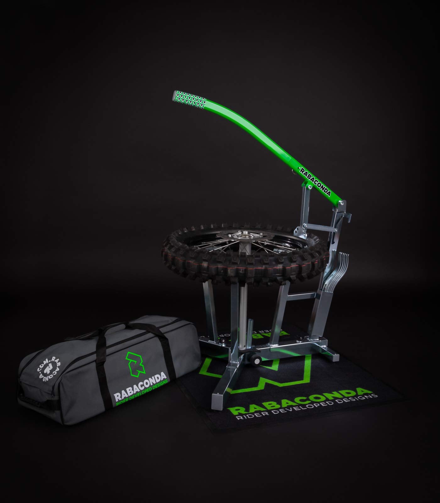 Rabaconda Is The Fastest Manual Tyre Changer. Combined With Slim Tip Motorcycle Tyre Levers (Not Included), This Is Race Paddock Tested By Over 80 Top Riders And Factory Teams Across The Globe. You Wont See Any Other Tyre Changing Machine Brand On The Racing Scene, And That'S For A Reason. With Rabaconda Tire Stand, “I Was Able To Change Tires Much Faster Than I Ever Have Before, And With About Half The Effort I Was Used To Putting In”. (Taylor Robert). “The Rabaconda Dirt Bike Tire Changer Helped Me So Much At The End Of The Long Days To Get The Tires Done With Less Time, And Most Of All Less Effort!” (Zach Osborne). Features: Rigid And Durable Construction, Yet Light Weight. Quick-Release Bolts For Fast Switching Between Wheel Sizes. Tire Can Be Removed Completely By Pushing It Down With The Bead Breaker. 3 Standing Points With Rubber Feet Provide Excellent Grip On Any Surface. Included Tyre Iron Tray For Convenient Storage. Galvanised And Powder Coated Steel, Anodised T6061-T6 Aluminium. Working Height: 20 Inch. Premium Quality Product. Made In Eu.