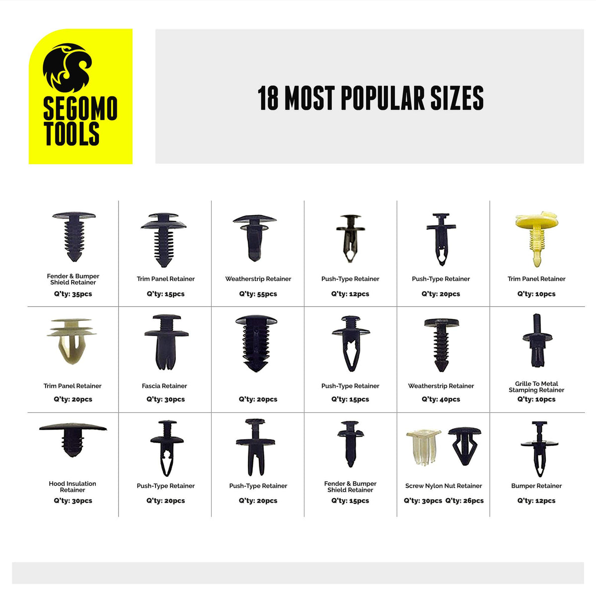 Segomo Tools 435 Piece Car Retainer, Plastic Fastener, Body Panel & Trim Clips Kit | Car Clips | Plastic Rivets | Automotive Cli