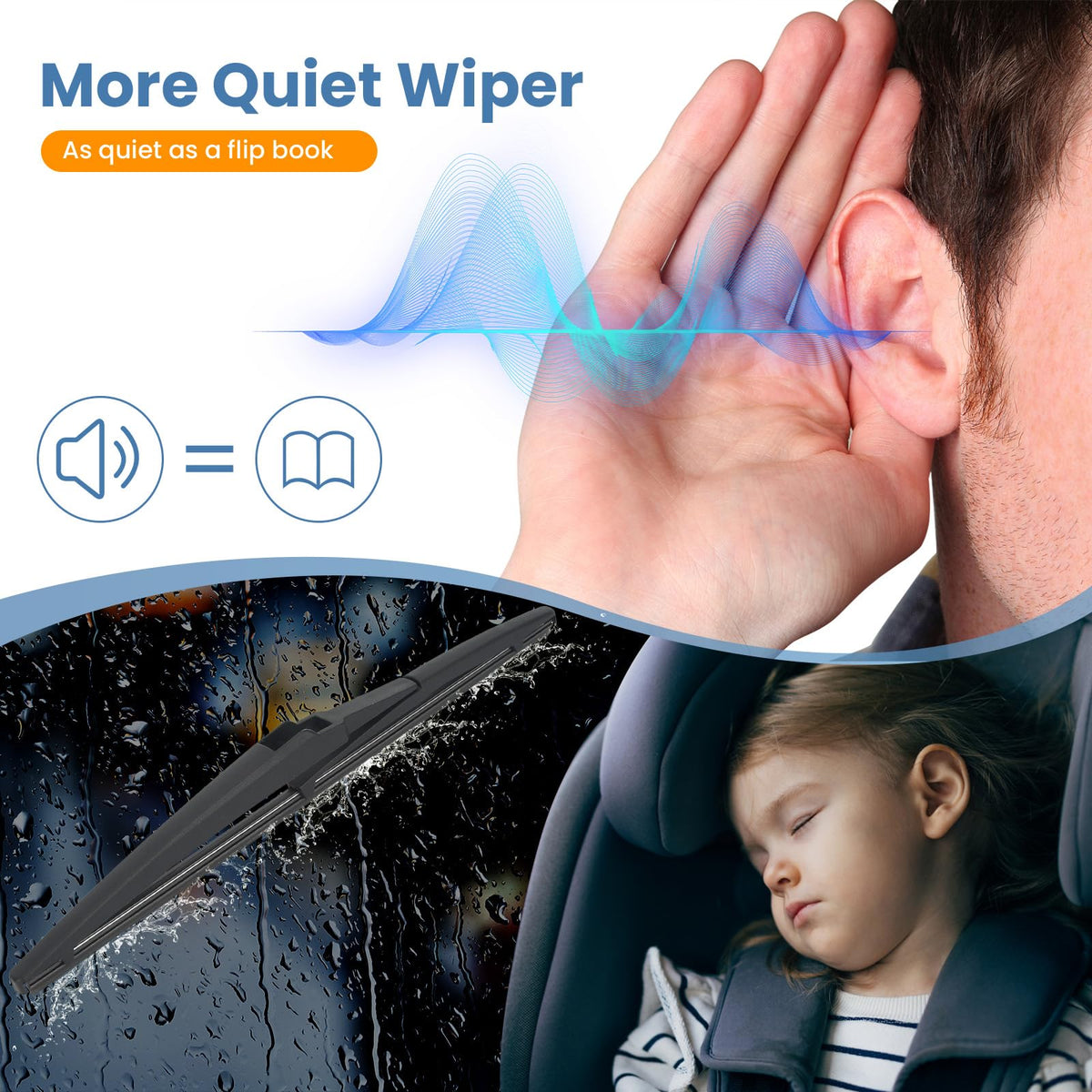 Q: How often should I replace my rear wiper blade?A: While the lifespan of your rear wiper blade can depend on various factors such as usage and weather conditions, the high-quality construction of this blade allows for a longer service life. It is advisable to inspect your wiper blades regularly for wear and replace them as needed to maintain clear visibility.