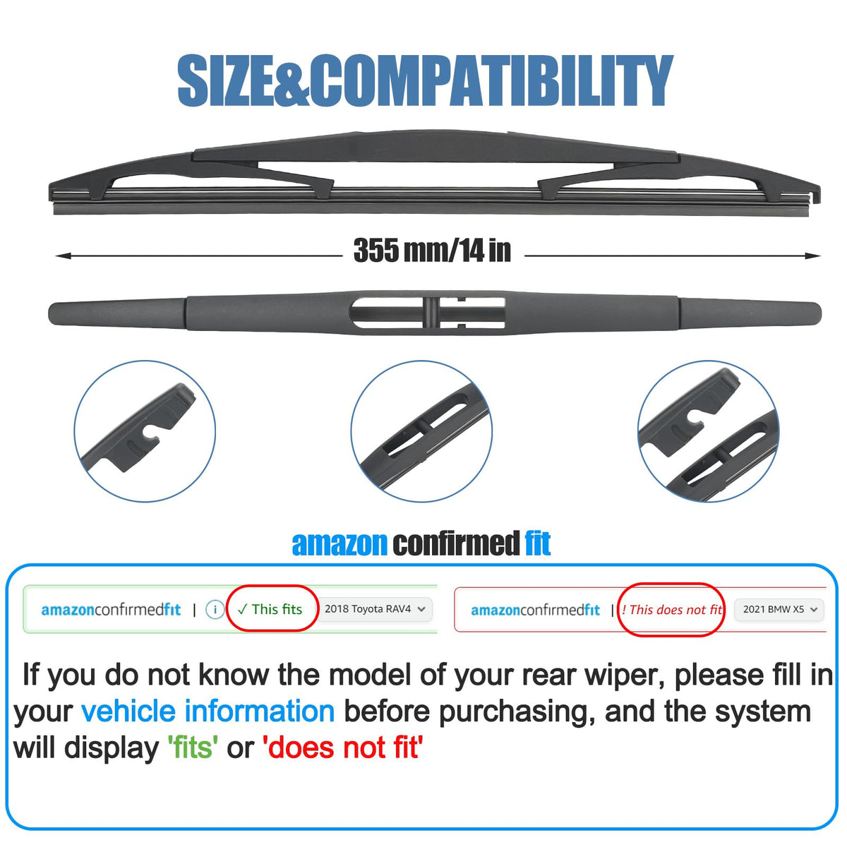 14'' Rear Wiper Blade, Replacement Back Windshield Wiper Blades For Subaru Forester 2024-2006 Ascent 23-19 Impreza 07-04 Legacy