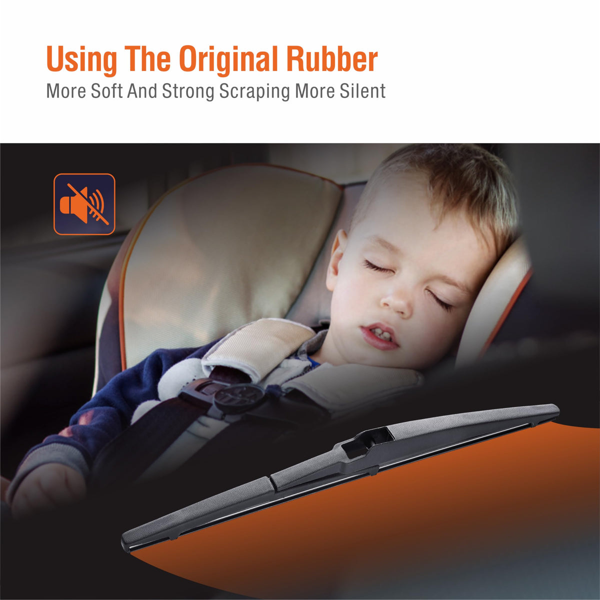 Q: What makes the WOWIPER Rear Wiper Blade stand out from other brands?A: The WOWIPER Rear Wiper Blade is designed for optimal performance and durability, featuring a reliable 'CLICK AND GO' installation system, compatibility with a wide range of vehicles, and a focus on enhancing visibility for safer driving conditions.
