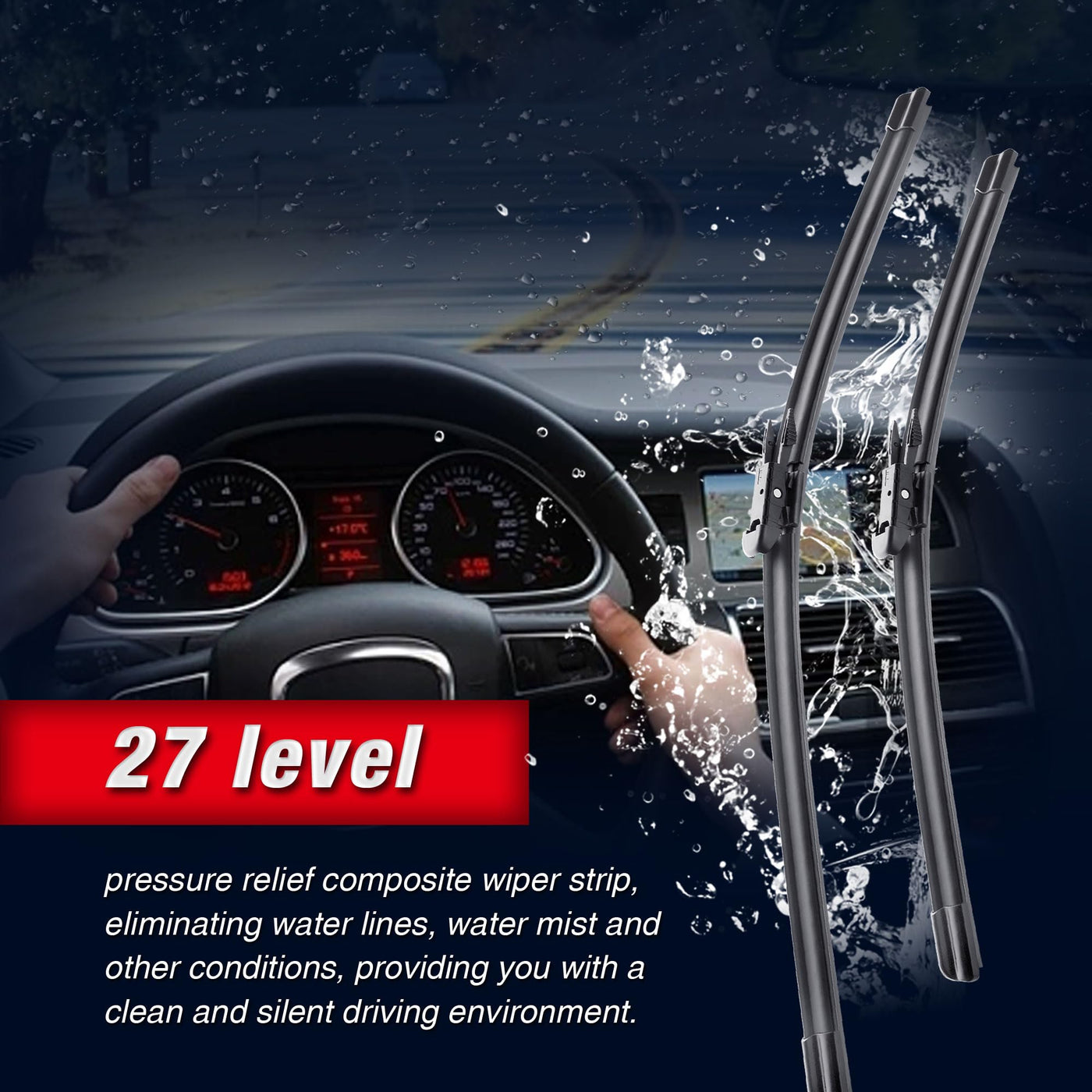 Q: How do these wiper blades ensure streak-free visibility?A: The wiper blades utilize strong spring technology and a smooth process design to closely fit the car window glass. This ensures effective cleaning of rainwater without leaving streaks, providing clear visibility during inclement weather.