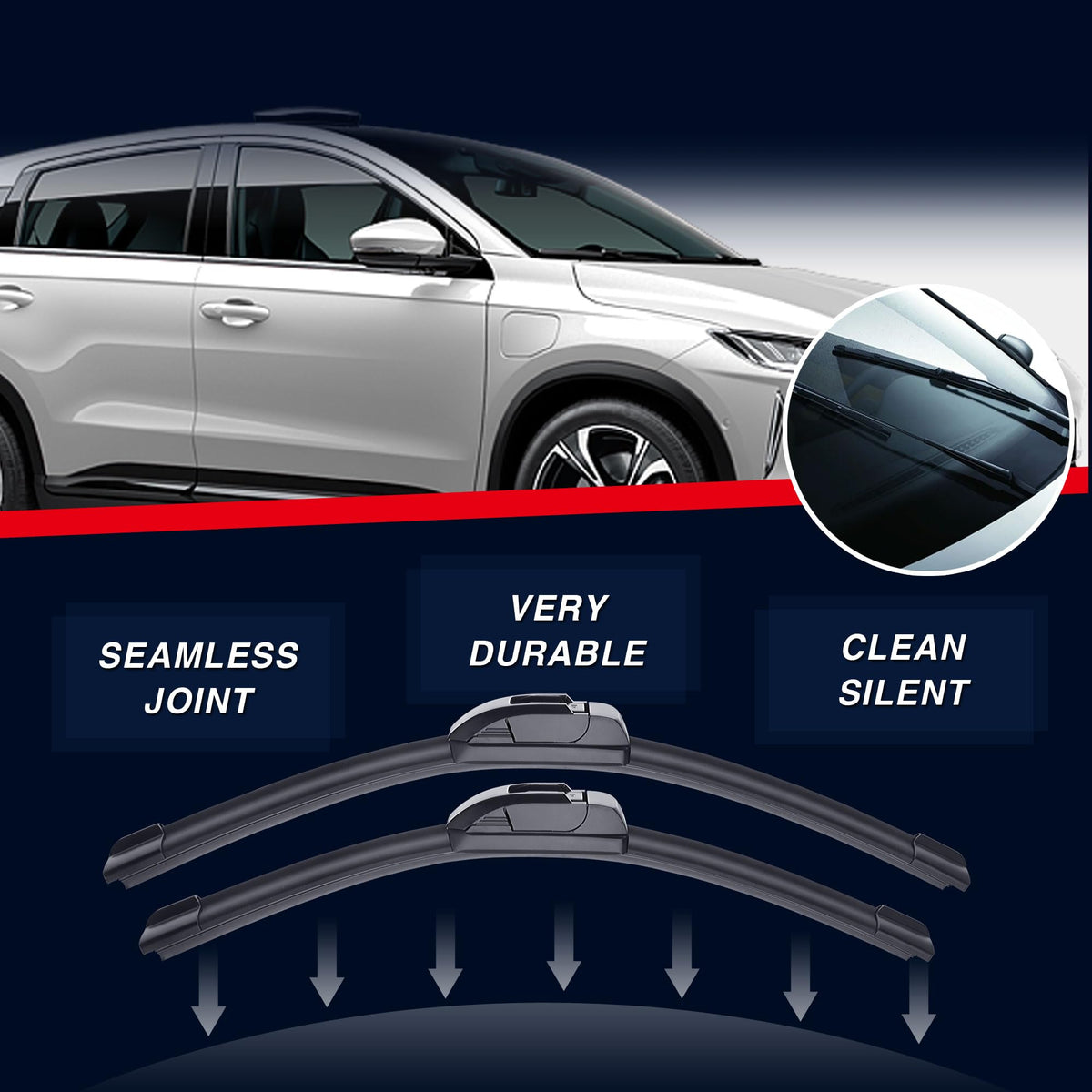 Q: What makes these wiper blades stand out from others?A: These wiper blades feature a stronger grip on the glass, which reduces head-on wind resistance and minimizes water marks. They are designed to provide effective wiping performance while being smaller than traditional packaging for convenience.