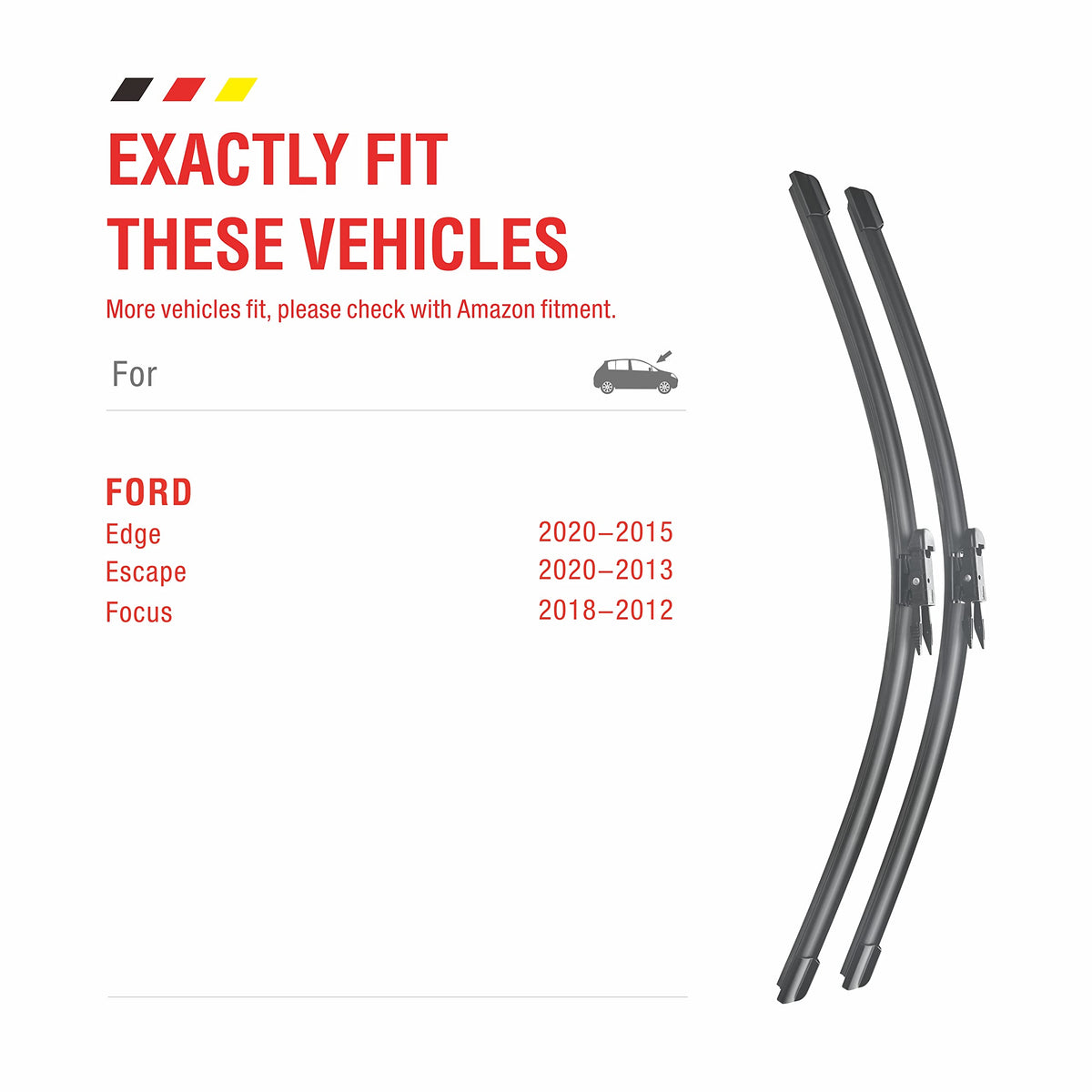 Q: Can I use these wiper blades for my Ford Escape or Focus?A: Absolutely! These wiper blades are also compatible with Ford Escape models from 2013 to 2019 and Ford Focus models from 2012 to 2018.