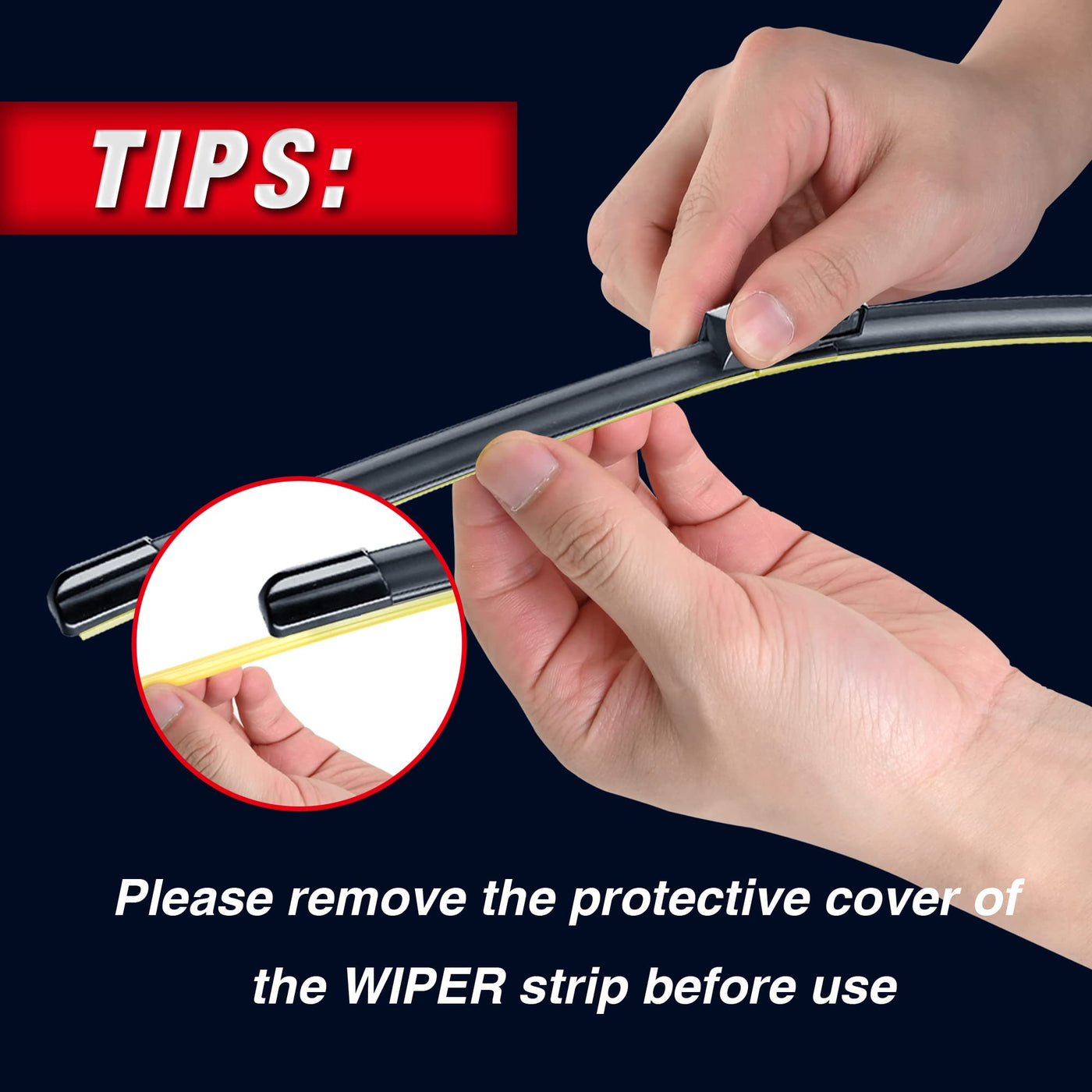 Q: What materials are used in the construction of these wiper blades?A: These wiper blades feature an OEM quality design made from natural rubber, providing durability and a quiet, effective wipe.