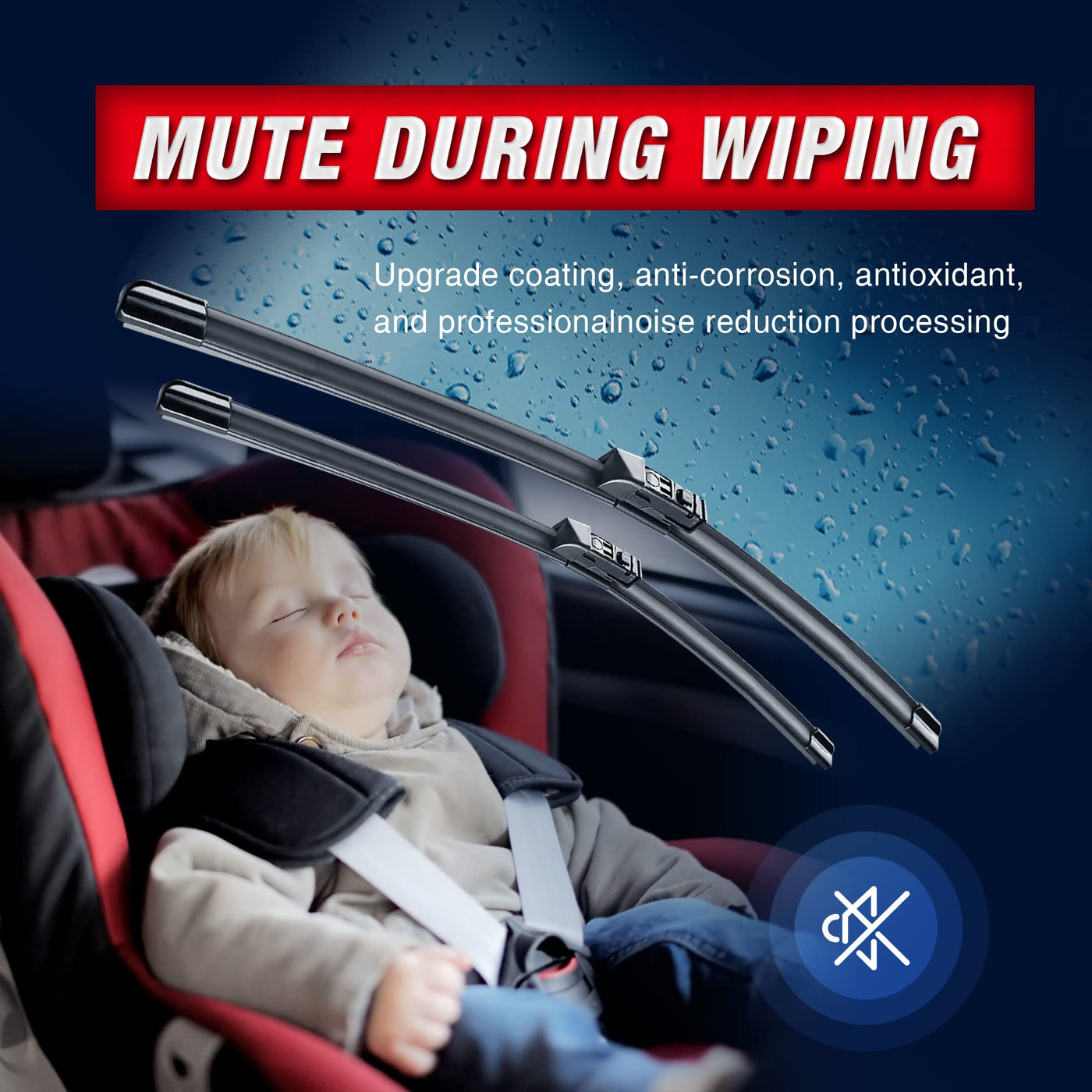 Q: Do these wiper blades reduce noise during operation?A: Yes, the natural rubber material used in these wiper blades helps to reduce noise, providing a quieter environment while driving.