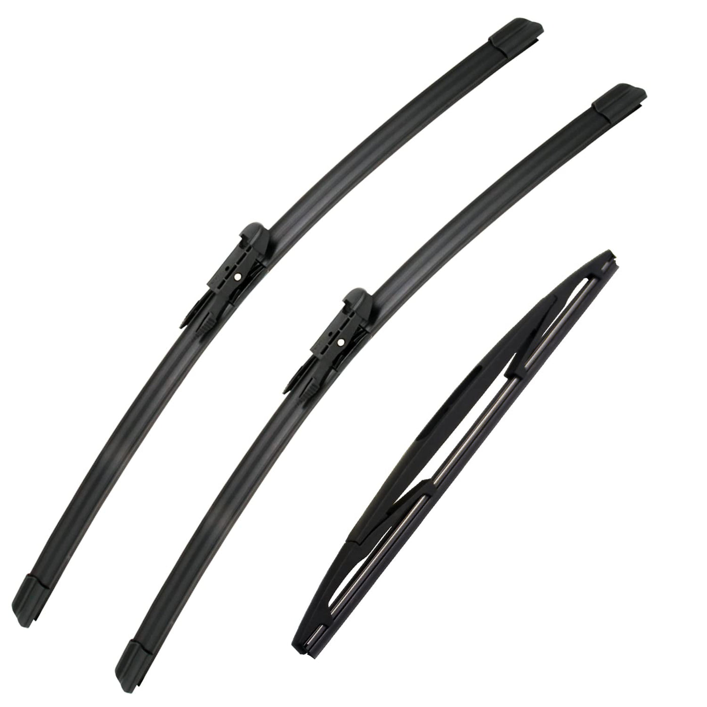 Q: What is included in the 3 Wipers Set?A: The set includes three OEM quality wiper blades: one driver side blade, one passenger side blade, and one rear wiper blade, all tailored for optimal performance.